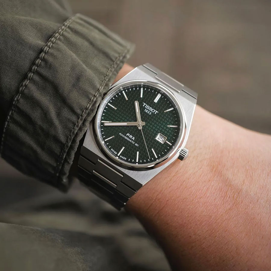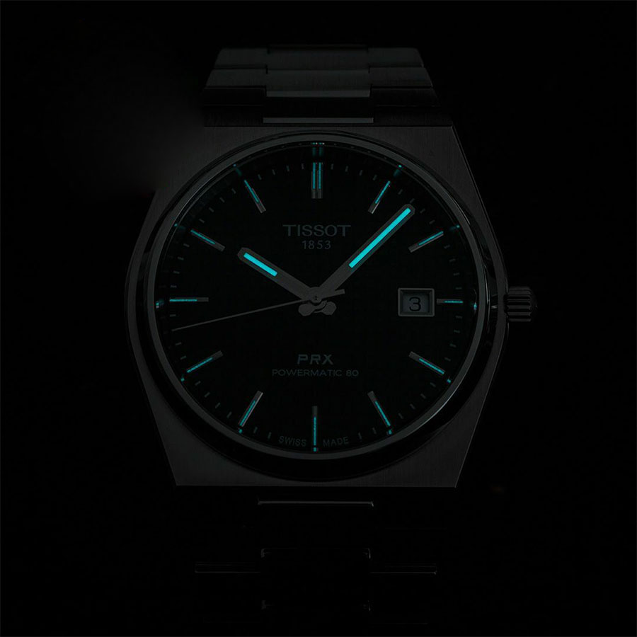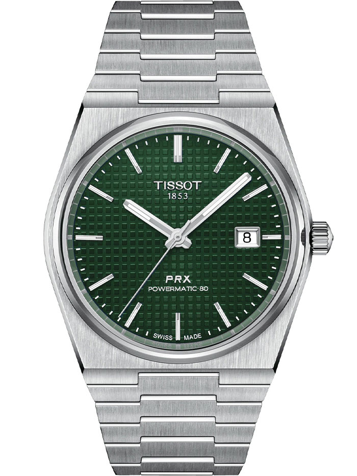 Мужские механические наручные часы TISSOT PRX Powermatic 80 40 мм T137.407.11.091.00 коллекции T Classic с автоподзаводом и возможностью ручного завода. Калибр механизма — Powermatic 80.111. В механизме часов использована запатентованная балансирная пружина Nivachron, благодаря чему запас хода значительно увеличен и составляет не менее 80-ти часов. Количество камней - 23. Функция стоп-секунда (остановка секундной стрелки для установки точного времени). На данной модели отображается текущая дата. Стрелки и метки покрыты люминесцентным напылением Super-LumiNova® (светятся в темноте). Сапфировое стекло с антибликовым покрытием, устойчивое к появлению царапин. Завинчивающаяся прозрачная задняя крышка. Стальной браслет. Водонепроницаемость WR100 (10 атм). Размеры корпуса: (ШxТ) 40x10.9 мм. Гарантийный срок — 3 года (1 год от производителя + 2 года от магазина).