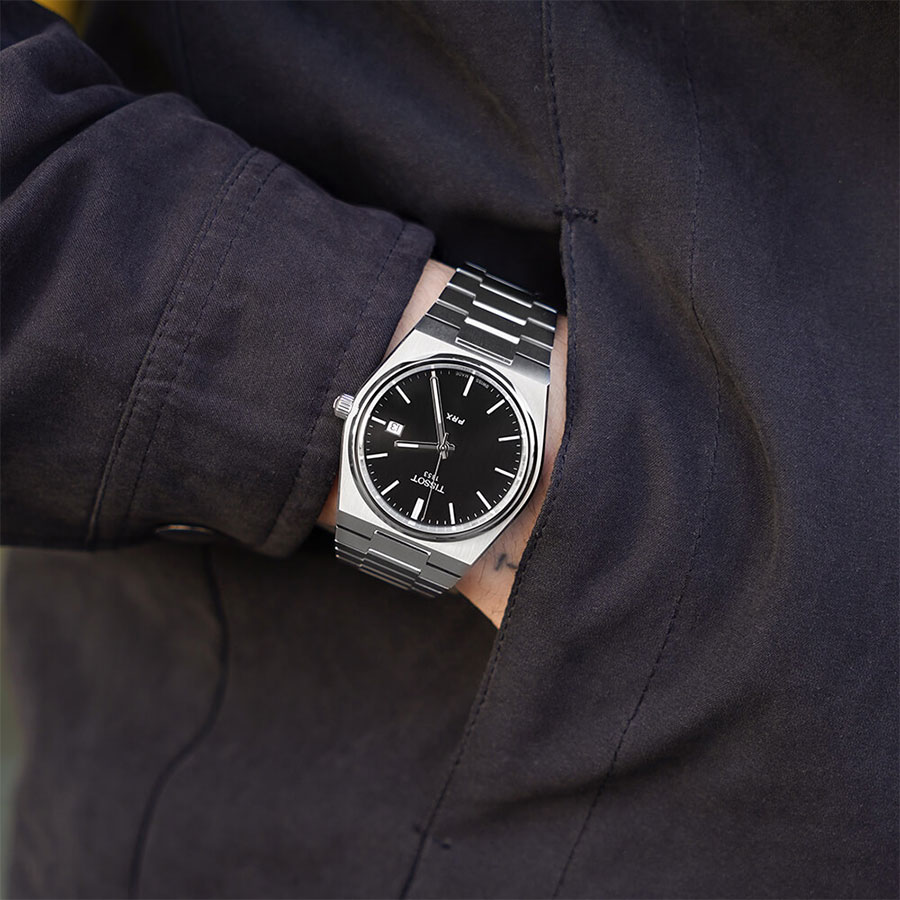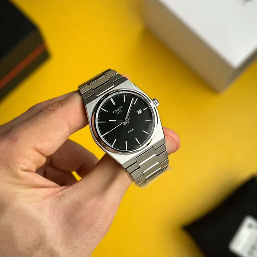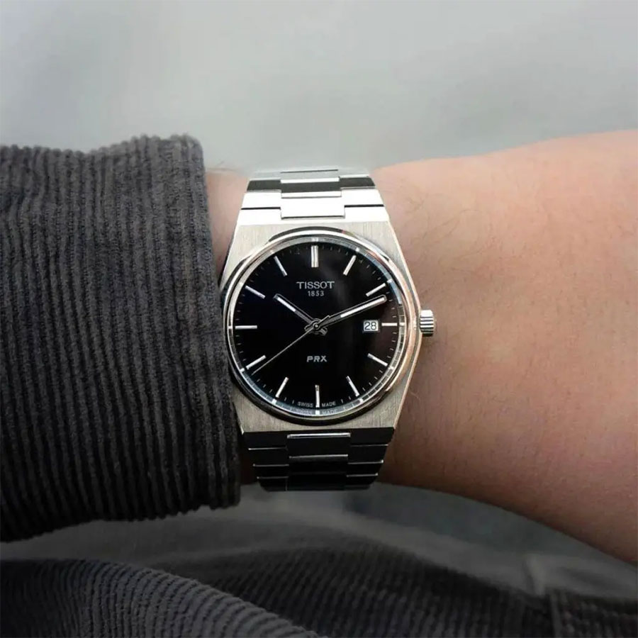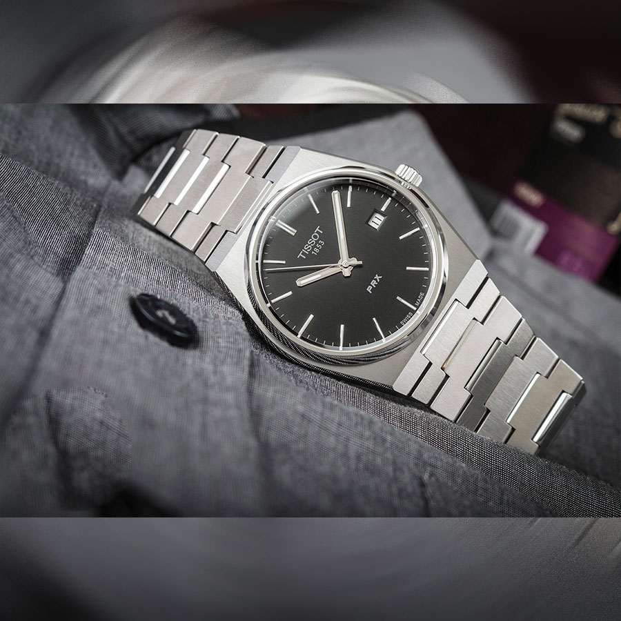 Мужские кварцевые наручные часы TISSOT PRX 40 mm T137.410.11.051.00 коллекции T Classic. Калибр механизма — ETA F06.115. На данной модели отображается текущая дата. Стрелки и метки покрыты люминесцентным напылением Super-LumiNova® (светятся в темноте). Сапфировое стекло с антибликовым покрытием, устойчивое к появлению царапин. Стальной браслет. Водонепроницаемость WR100 (10 атм). Размеры корпуса: (ШxТ) 40x10.4 мм. Гарантийный срок — 3 года (1 год от производителя + 2 года от магазина).