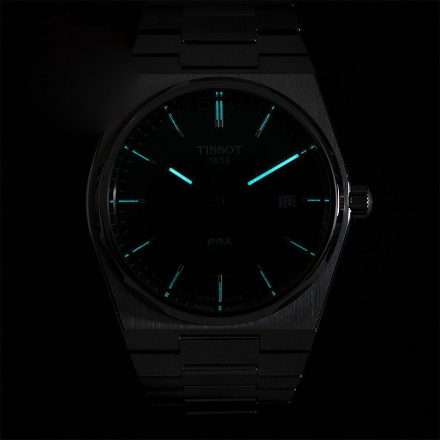 Мужские кварцевые наручные часы TISSOT PRX 40 mm T137.410.11.091.00 коллекции T Classic. Калибр механизма — ETA F06.115. На данной модели отображается текущая дата. Стрелки и метки покрыты люминесцентным напылением Super-LumiNova® (светятся в темноте). Сапфировое стекло с антибликовым покрытием, устойчивое к появлению царапин. Стальной браслет. Водонепроницаемость WR100 (10 атм). Размеры корпуса: (ШxТ) 40x10.4 мм. Гарантийный срок — 3 года (1 год от производителя + 2 года от магазина).