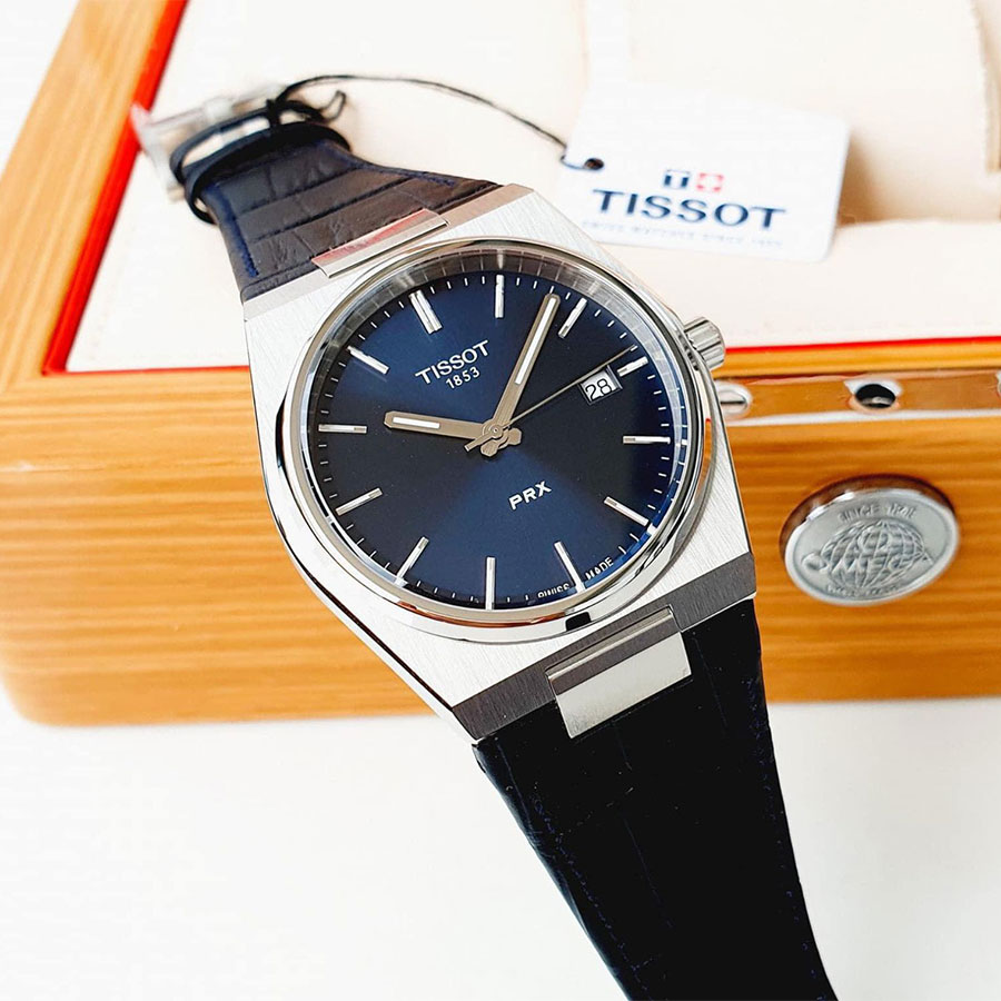 Мужские кварцевые наручные часы TISSOT PRX 40 mm T137.410.16.041.00 коллекции T Classic. Калибр механизма — ETA F06.115. На данной модели отображается текущая дата. Стрелки и метки покрыты люминесцентным напылением Super-LumiNova® (светятся в темноте). Сапфировое стекло с антибликовым покрытием, устойчивое к появлению царапин. Кожаный ремешок. Водонепроницаемость WR100 (10 атм). Размеры корпуса: (ШxТ) 40x10.4 мм. Гарантийный срок — 3 года (1 год от производителя + 2 года от магазина).