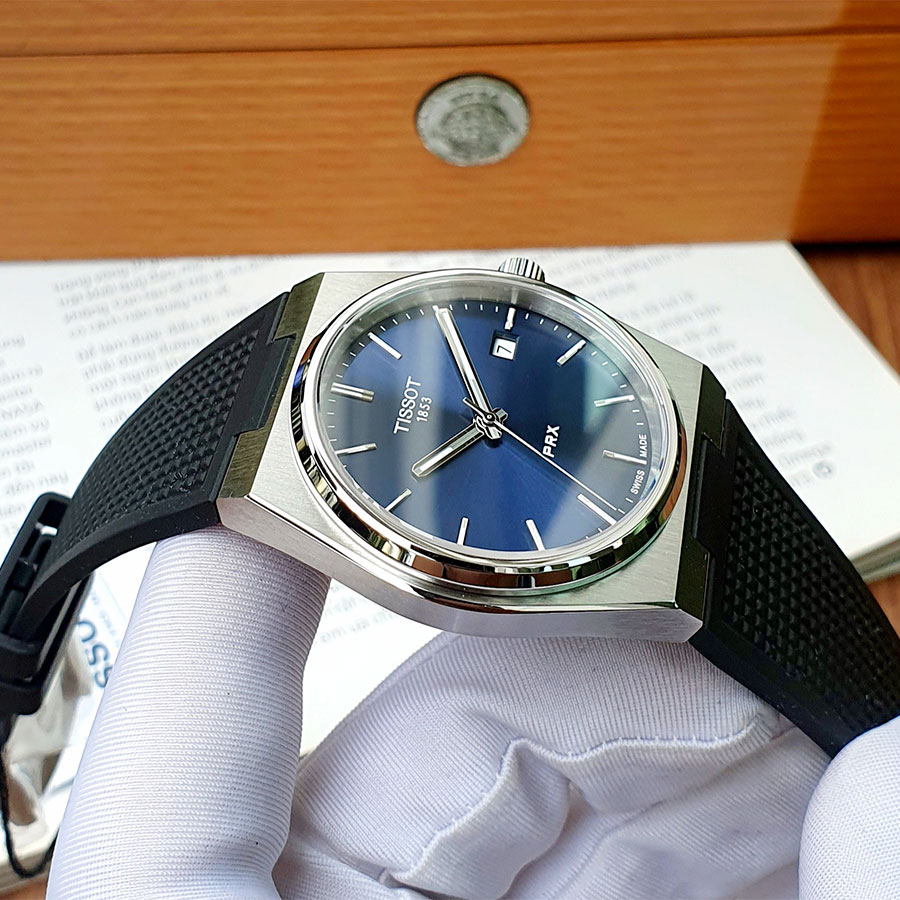 Мужские кварцевые наручные часы TISSOT PRX 40 mm T137.410.17.041.00 коллекции T Classic. Калибр механизма — ETA F06.115. На данной модели отображается текущая дата. Стрелки и метки покрыты люминесцентным напылением Super-LumiNova® (светятся в темноте). Сапфировое стекло с антибликовым покрытием, устойчивое к появлению царапин. Полимерный ремешок. Водонепроницаемость WR100 (10 атм). Размеры корпуса: (ШxТ) 40x10.4 мм. Гарантийный срок — 3 года (1 год от производителя + 2 года от магазина).