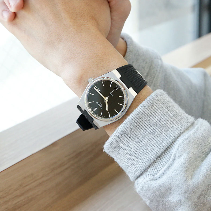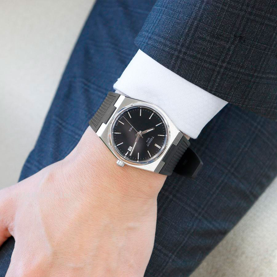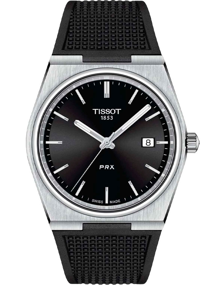 Мужские кварцевые наручные часы TISSOT PRX 40 mm T137.410.17.051.00 коллекции T Classic. Калибр механизма — ETA F06.115. На данной модели отображается текущая дата. Стрелки и метки покрыты люминесцентным напылением Super-LumiNova® (светятся в темноте). Сапфировое стекло с антибликовым покрытием, устойчивое к появлению царапин. Полимерный ремешок. Водонепроницаемость WR100 (10 атм). Размеры корпуса: (ШxТ) 40x10.4 мм. Гарантийный срок — 3 года (1 год от производителя + 2 года от магазина).
