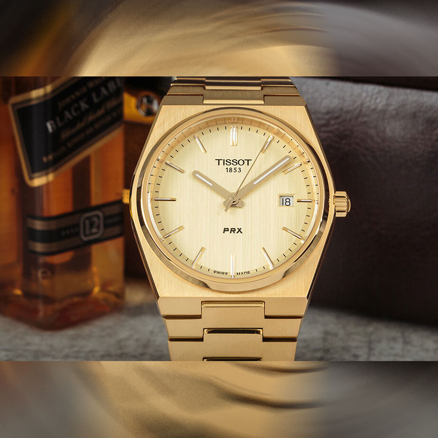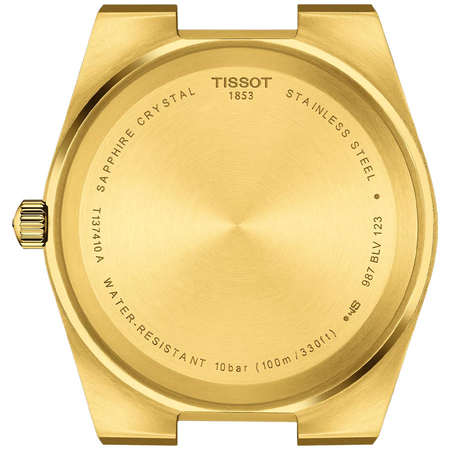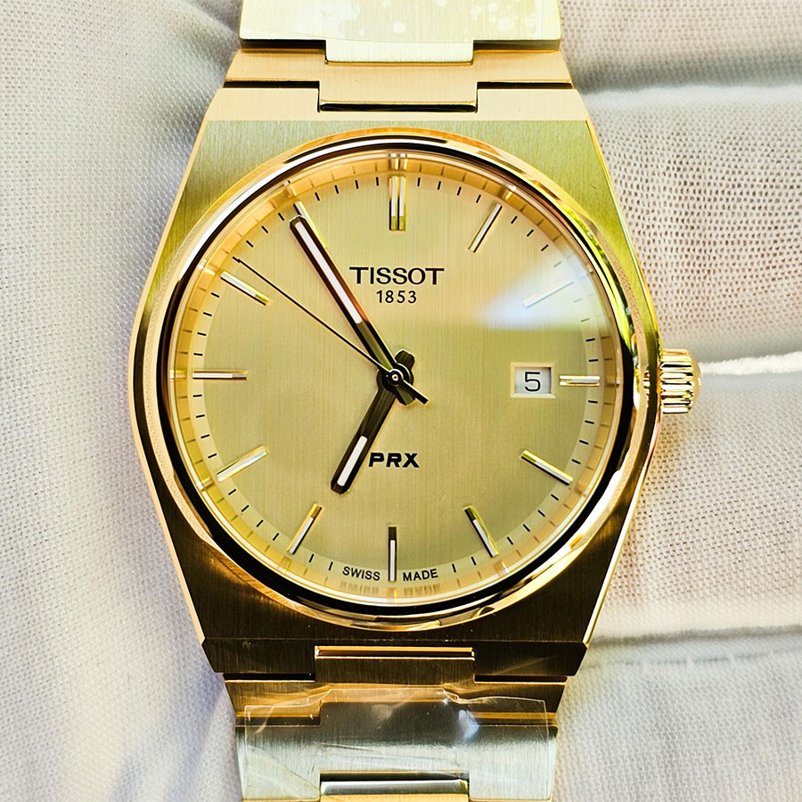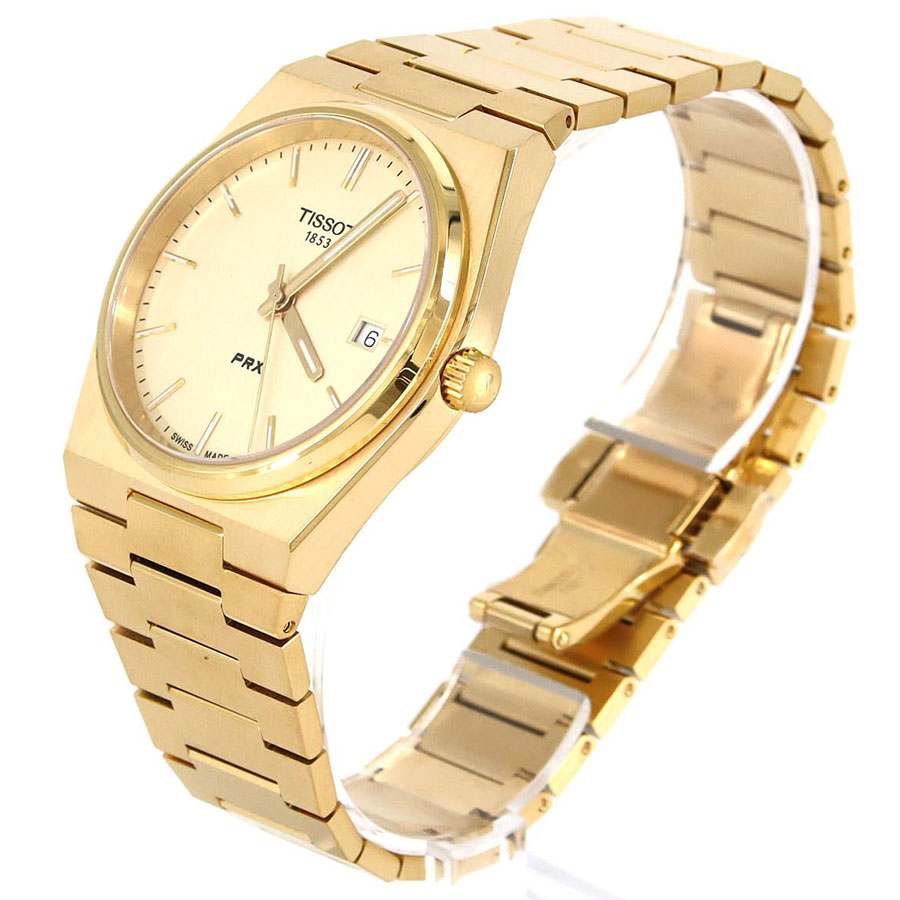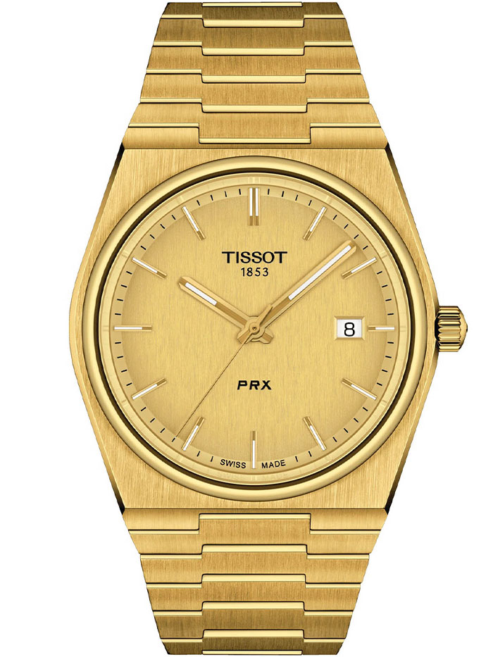 Мужские кварцевые наручные часы TISSOT PRX 40 mm T137.410.33.021.00 коллекции T Classic. Калибр механизма — ETA F06.115. На данной модели отображается текущая дата. Стрелки и метки покрыты люминесцентным напылением Super-LumiNova® (светятся в темноте). Сапфировое стекло с антибликовым покрытием, устойчивое к появлению царапин. Стальной браслет. На корпус и браслет нанесено стойкое PVD покрытие. Водонепроницаемость WR100 (10 атм). Размеры корпуса: (ШxТ) 40x10.4 мм. Гарантийный срок — 3 года (1 год от производителя + 2 года от магазина).
