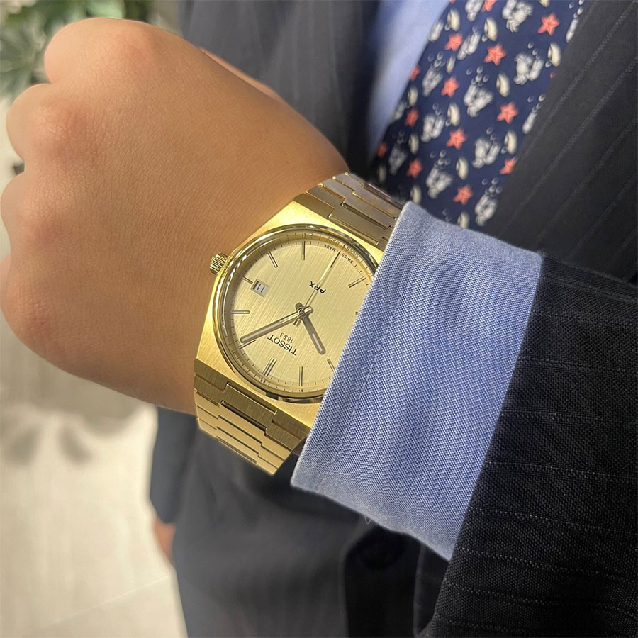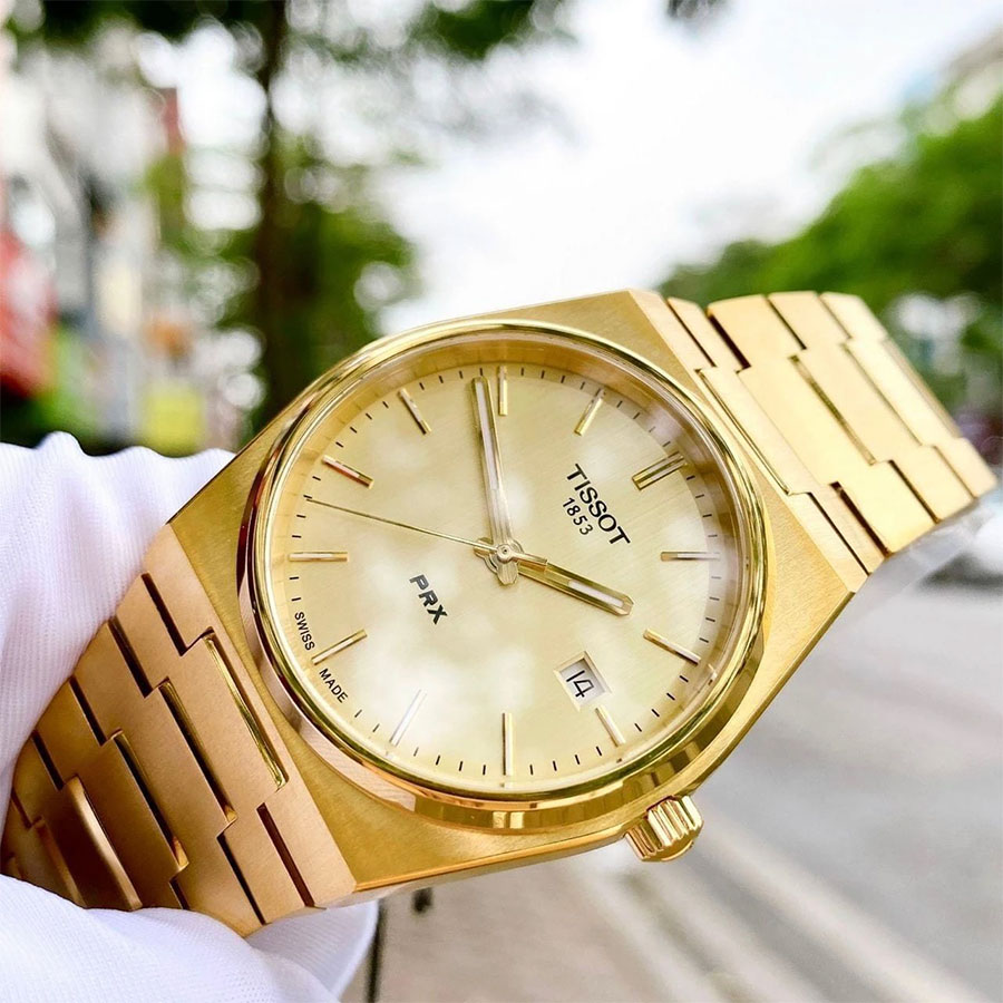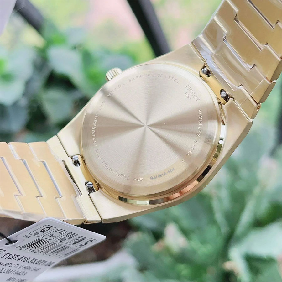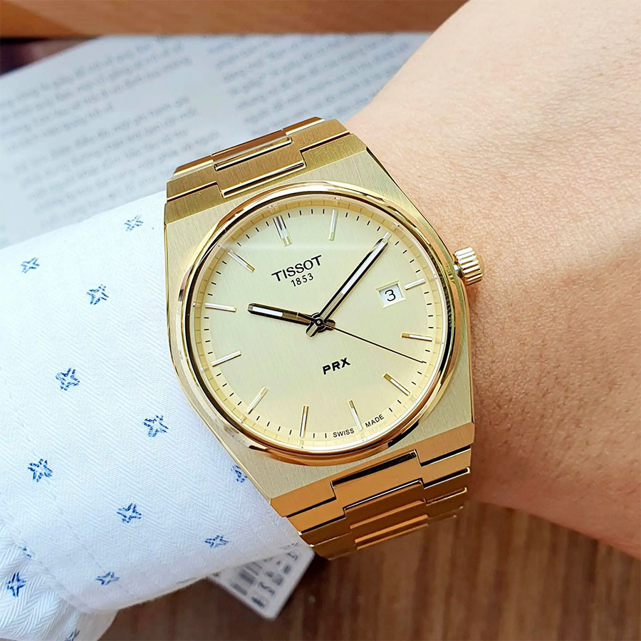 Мужские кварцевые наручные часы TISSOT PRX 40 mm T137.410.33.021.00 коллекции T Classic. Калибр механизма — ETA F06.115. На данной модели отображается текущая дата. Стрелки и метки покрыты люминесцентным напылением Super-LumiNova® (светятся в темноте). Сапфировое стекло с антибликовым покрытием, устойчивое к появлению царапин. Стальной браслет. На корпус и браслет нанесено стойкое PVD покрытие. Водонепроницаемость WR100 (10 атм). Размеры корпуса: (ШxТ) 40x10.4 мм. Гарантийный срок — 3 года (1 год от производителя + 2 года от магазина).