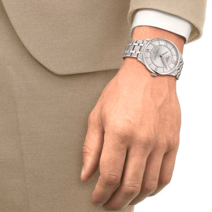 Мужские механические наручные часы TISSOT Chemin Des Tourelles Powermatic 80 42mm T139.407.11.038.00 коллекции T Classic с автоподзаводом и возможностью ручного завода. Калибр механизма — Powermatic 80.111. В механизме часов использована запатентованная балансирная пружина Nivachron, благодаря чему запас хода значительно увеличен и составляет не менее 80-ти часов. Количество камней - 23. Функция стоп-секунда (остановка секундной стрелки для установки точного времени). На данной модели отображается текущая дата. Сапфировое стекло с антибликовым покрытием, устойчивое к появлению царапин. Завинчивающаяся прозрачная задняя крышка. Стальной браслет. Водонепроницаемость WR50 (5 атм). Размеры корпуса: (ШxТ) 42x11.3 мм. Гарантийный срок — 3 года (1 год от производителя + 2 года от магазина).
