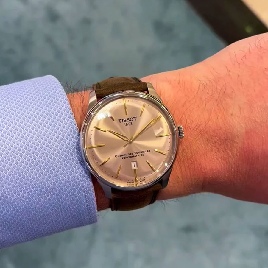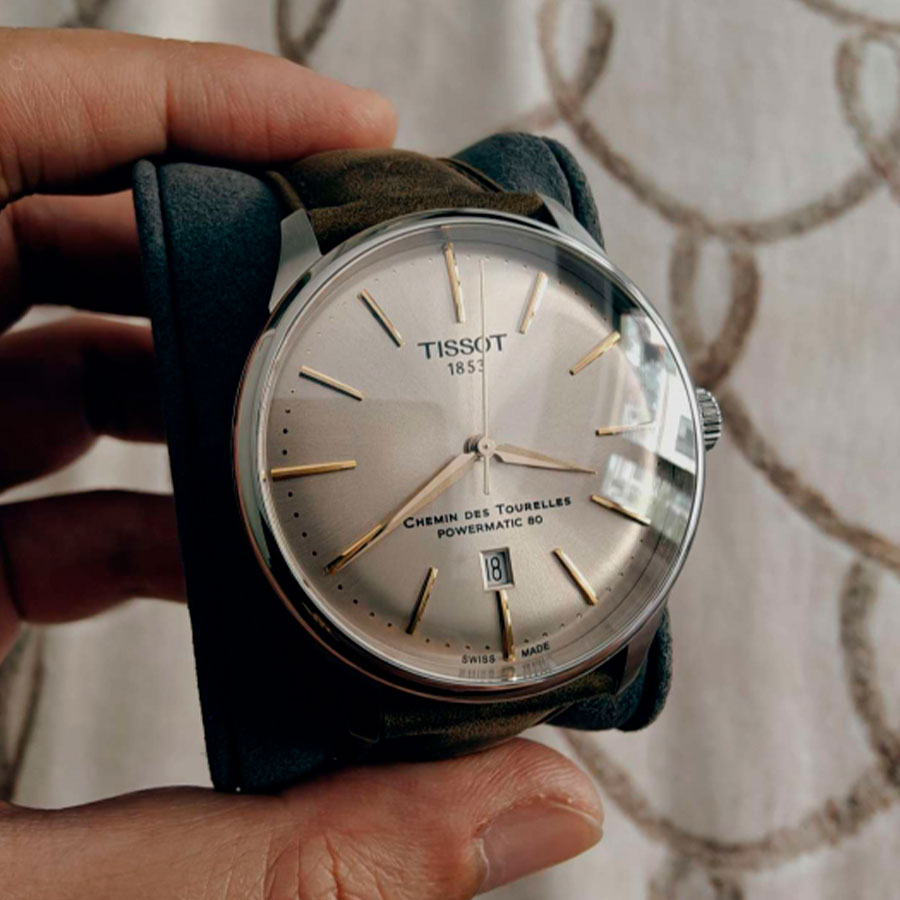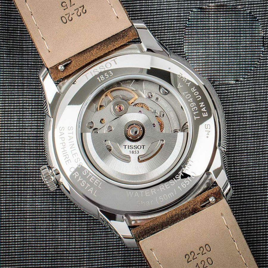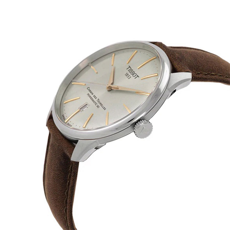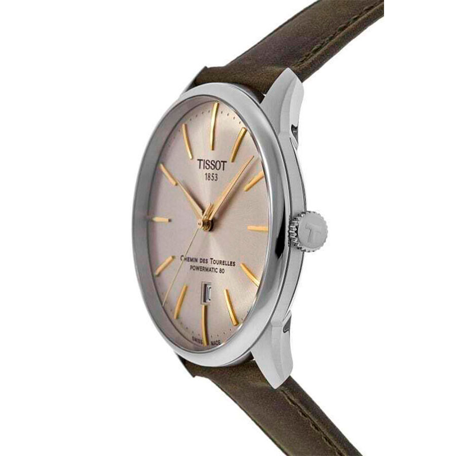 Мужские механические наручные часы TISSOT Chemin Des Tourelles Powermatic 80 42mm T139.407.16.261.00 коллекции T Classic с автоподзаводом и возможностью ручного завода. Калибр механизма — Powermatic 80.111. В механизме часов использована запатентованная балансирная пружина Nivachron, благодаря чему запас хода значительно увеличен и составляет не менее 80-ти часов. Количество камней - 23. Функция стоп-секунда (остановка секундной стрелки для установки точного времени). На данной модели отображается текущая дата. Сапфировое стекло с антибликовым покрытием, устойчивое к появлению царапин. Завинчивающаяся прозрачная задняя крышка. Кожаный ремешок. Водонепроницаемость WR50 (5 атм). Размеры корпуса: (ШxТ) 42x11.3 мм. Гарантийный срок — 3 года (1 год от производителя + 2 года от магазина).