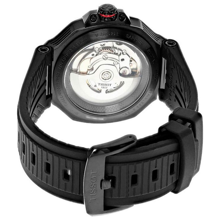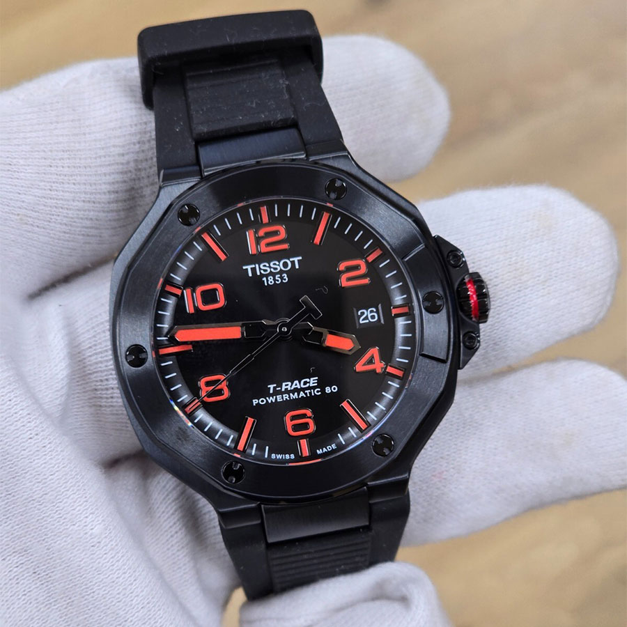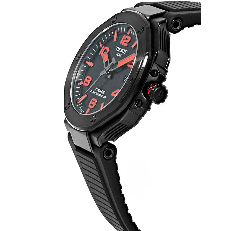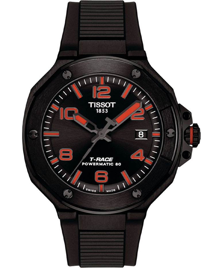 Мужские механические наручные часы TISSOT T-Race Powermatic 80 T141.807.37.057.00 коллекции T Sport с автоподзаводом и возможностью ручного завода. Калибр механизма — Powermatic 80.111. В механизме часов использована запатентованная балансирная пружина Nivachron, благодаря чему запас хода значительно увеличен и составляет не менее 80-ти часов. Количество камней - 23. Функция стоп-секунда (остановка секундной стрелки для установки точного времени). На данной модели отображается текущая дата. Стрелки и метки покрыты люминесцентным напылением Super-LumiNova® (светятся в темноте). Сапфировое стекло с антибликовым покрытием, устойчивое к появлению царапин. Завинчивающаяся прозрачная задняя крышка. Полимерный ремешок. На корпус нанесено стойкое PVD покрытие. Водонепроницаемость WR100 (10 атм). Размеры корпуса: (ШxТ) 41x11.3 мм. Гарантийный срок — 3 года (1 год от производителя + 2 года от магазина).