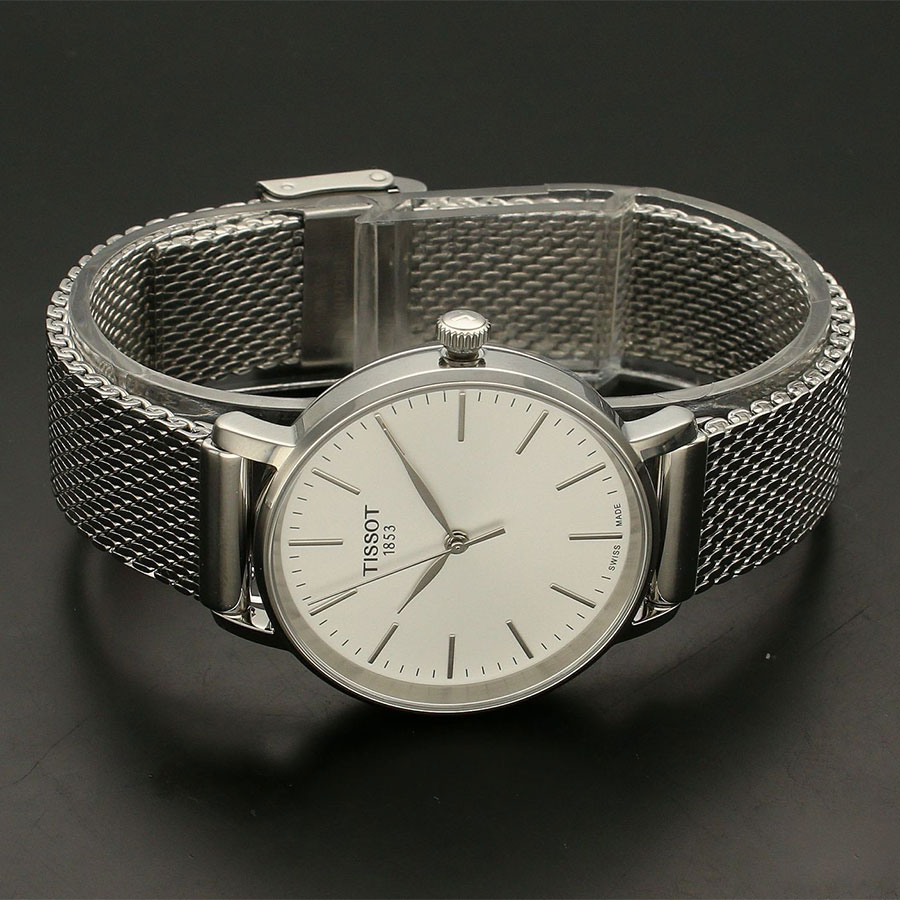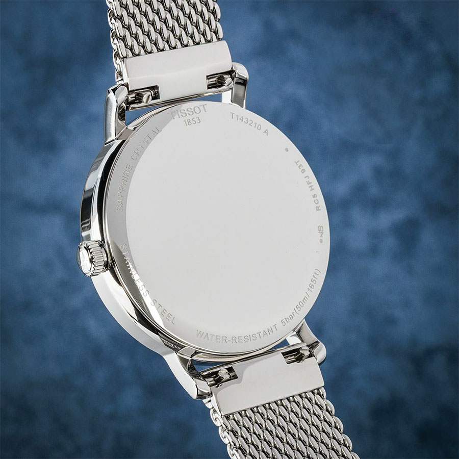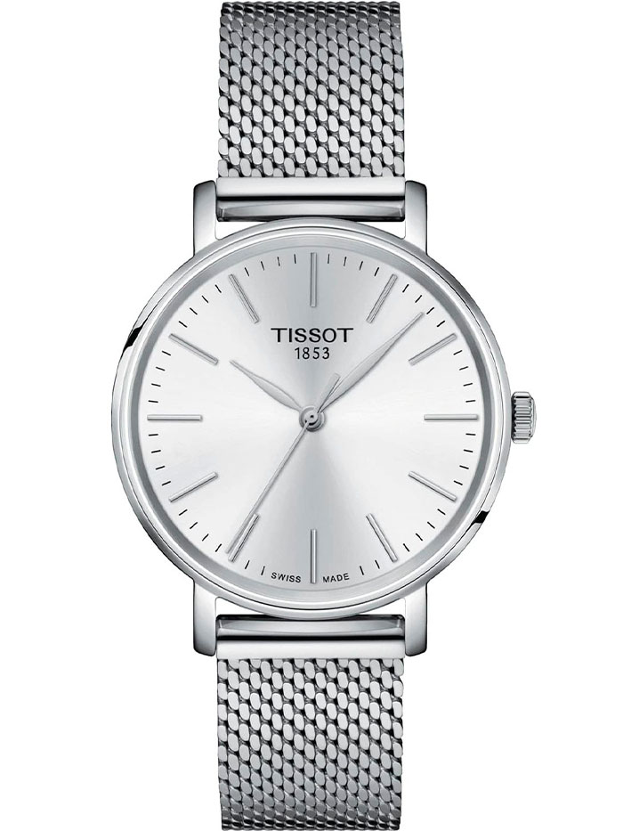 Женские кварцевые наручные часы TISSOT Everytime Lady T143.210.11.011.00 коллекции T Classic. Калибр механизма — ETA F05.412. Cапфировое стекло, устойчивое к появлению царапин. Стальной браслет миланского плетения. Водонепроницаемость WR50 (5 атм). Размеры корпуса: (ШxТ) 34x7 мм. Гарантийный срок — 3 года (1 год от производителя + 2 года от магазина).
