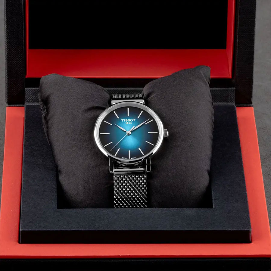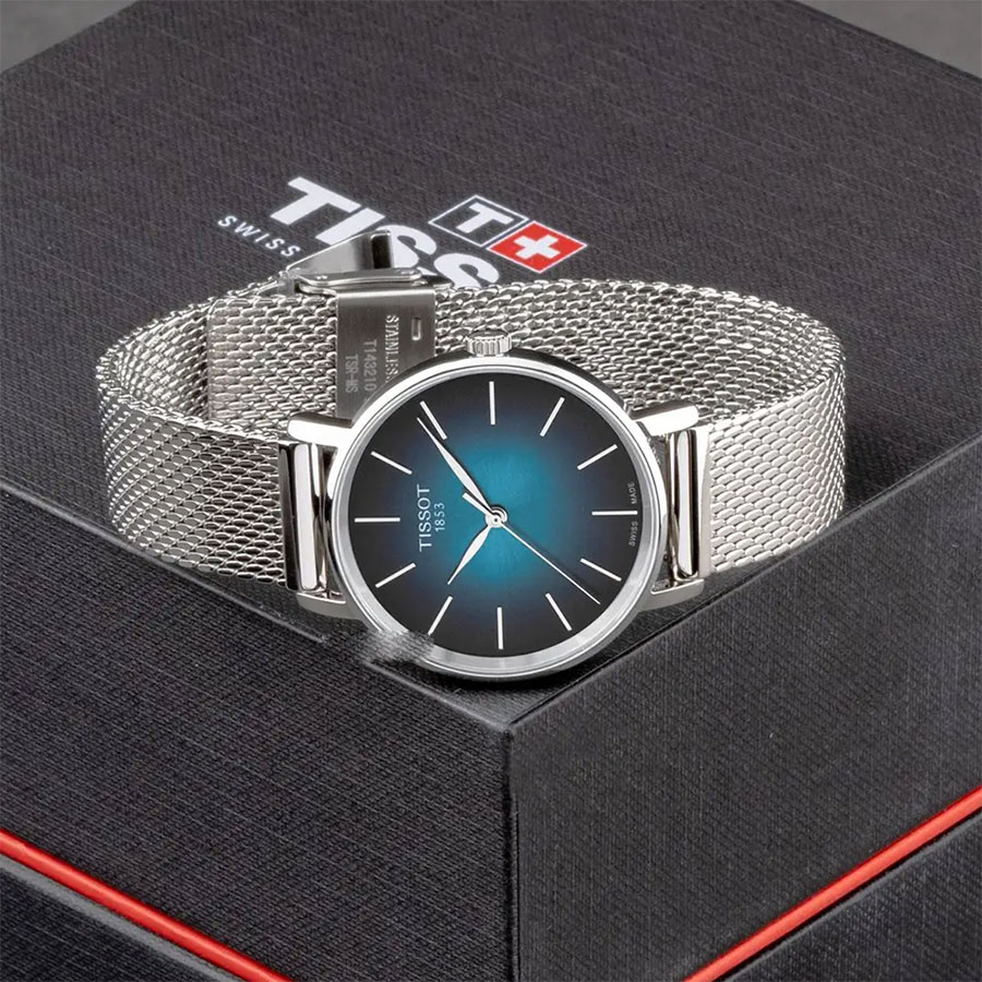 Женские кварцевые наручные часы TISSOT Everytime Lady T143.210.11.091.00 коллекции T Classic. Калибр механизма — ETA F05.412. Cапфировое стекло, устойчивое к появлению царапин. Стальной браслет миланского плетения. Водонепроницаемость WR50 (5 атм). Размеры корпуса: (ШxТ) 34x7 мм. Гарантийный срок — 3 года (1 год от производителя + 2 года от магазина).