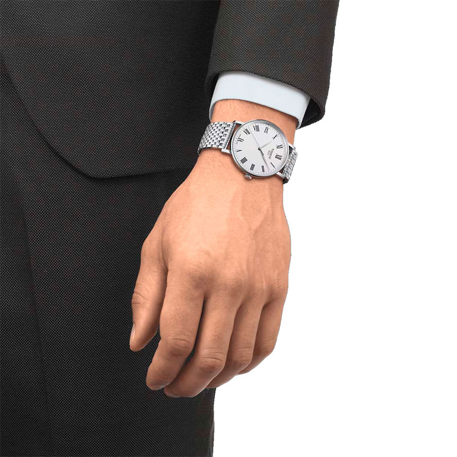 Мужские кварцевые наручные часы TISSOT Everytime Gent T143.410.11.033.00 коллекции T Classic. Калибр механизма — ETA F06.412. Cапфировое стекло, устойчивое к появлению царапин. Стальной браслет. Водонепроницаемость WR50 (5 атм). Размеры корпуса: (ШxТ) 40x7 мм. Гарантийный срок — 3 года (1 год от производителя + 2 года от магазина).