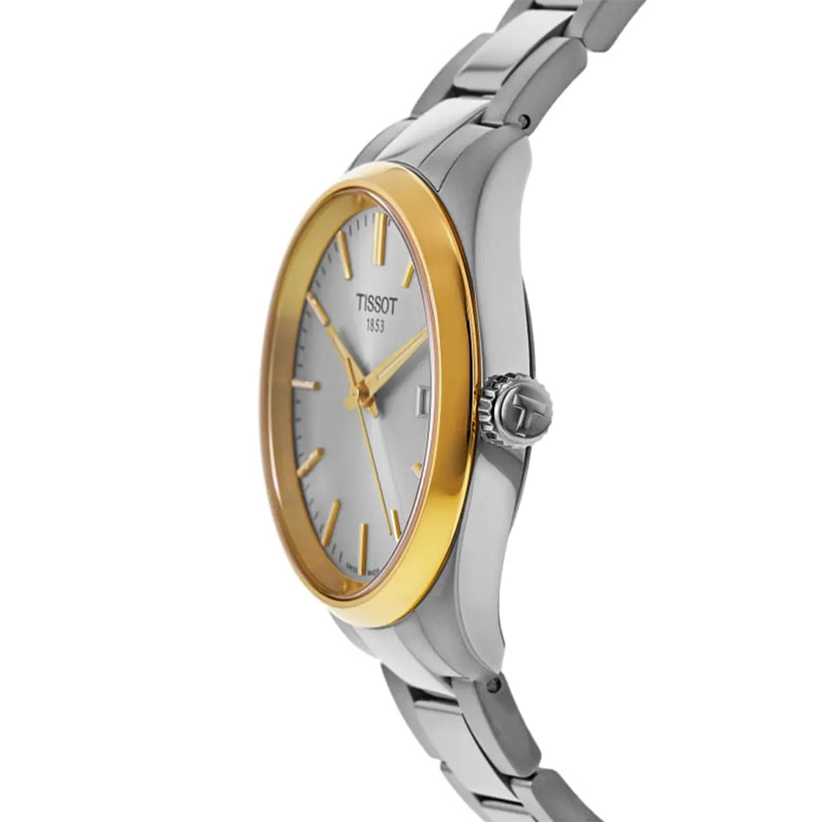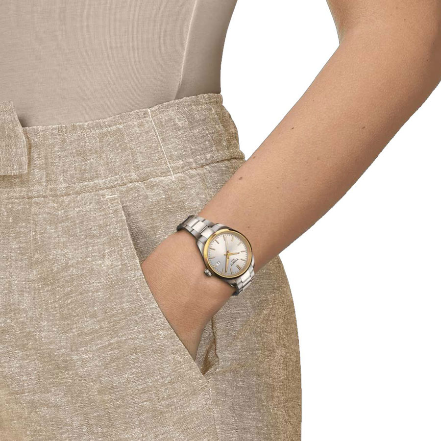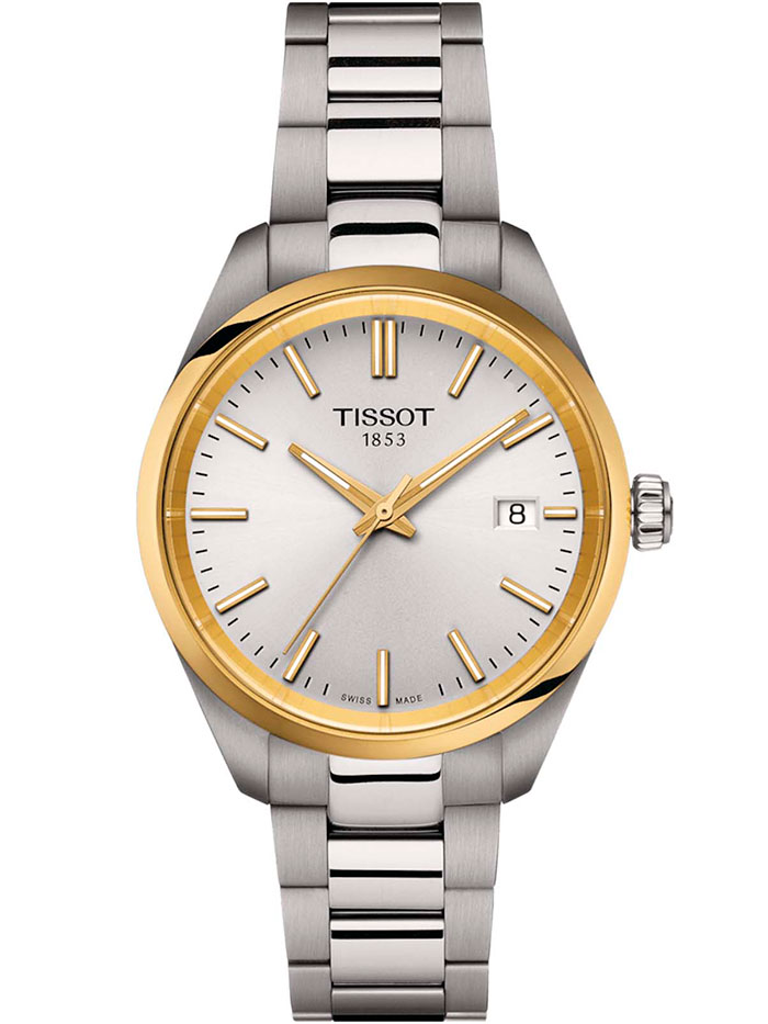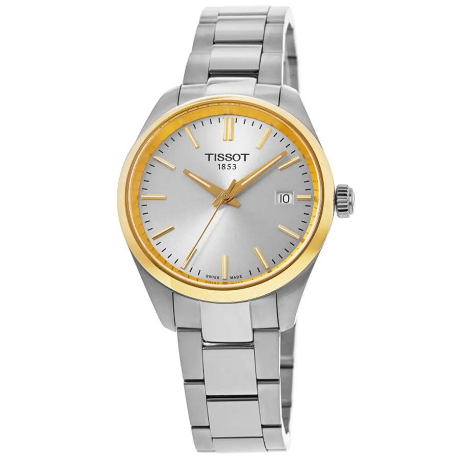 Женские кварцевые наручные часы TISSOT PR 100 T150.210.21.031.00 коллекции T Classic. Калибр механизма — ETA F05.115. На данной модели отображается текущая дата. Стрелки и метки покрыты люминесцентным напылением Super-LumiNova® (светятся в темноте). Сапфировое стекло с антибликовым покрытием, устойчивое к появлению царапин. Стальной браслет. На корпус частично нанесено стойкое PVD покрытие. Водонепроницаемость WR100 (10 атм). Размеры корпуса: (ШxТ) 34x8.3 мм. Гарантийный срок — 3 года (1 год от производителя + 2 года от магазина).