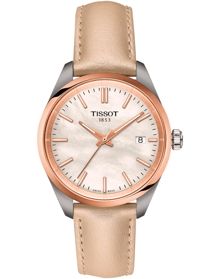 Женские кварцевые наручные часы TISSOT PR 100 T150.210.26.111.00 коллекции T Classic. Калибр механизма — ETA F05.115. На данной модели отображается текущая дата. Стрелки и метки покрыты люминесцентным напылением Super-LumiNova® (светятся в темноте). Сапфировое стекло с антибликовым покрытием, устойчивое к появлению царапин. Кожаный ремешок. На корпус частично нанесено стойкое PVD покрытие. Водонепроницаемость WR100 (10 атм). Размеры корпуса: (ШxТ) 34x8.3 мм. Гарантийный срок — 3 года (1 год от производителя + 2 года от магазина).