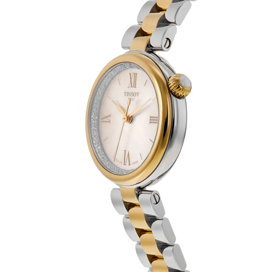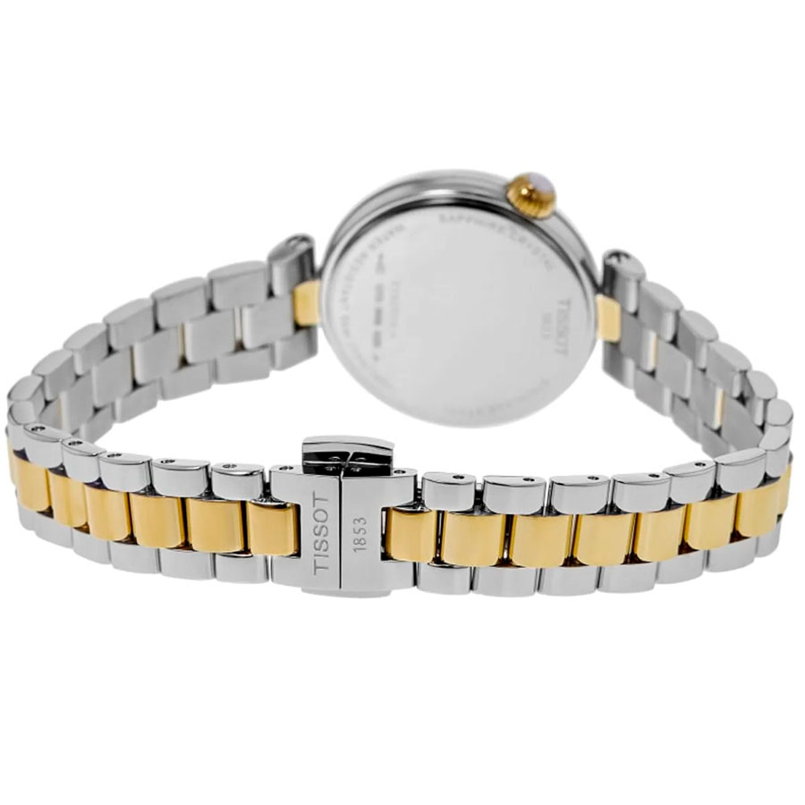 Женские кварцевые наручные часы TISSOT Desir T152.010.22.118.01 коллекции T Classic. Калибр механизма — ETA F04.115. Сферическое сапфировое стекло, устойчивое к появлению царапин. Стальной браслет. На корпус и браслет частично нанесено стойкое PVD покрытие. Водонепроницаемость WR50 (5 атм). Размеры корпуса: (ШxТ) 28x7.7 мм. Гарантийный срок — 3 года (1 год от производителя + 2 года от магазина).