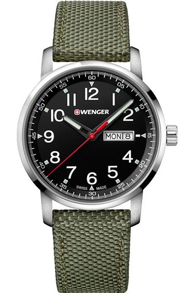 Мужские кварцевые часы Wenger 01.1541.109 коллекции Attitude Heritage. Калибр механизма — Ronda 517. На данной модели отображается текущая дата и день недели. Стрелки и цифры покрыты люминесцентным напылением (светятся в темноте). Установлено минеральное стекло с сапфировым покрытием (устойчивое к царапинам). Текстильный ремешок. Завинчивающаяся задняя крышка часов. Водонепроницаемость WR100 (10 атм). Швейцарская сборка (Swiss made). Официальная гарантия от производителя — 3 года.