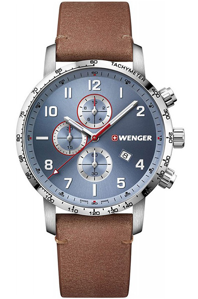 Мужские кварцевые часы Wenger 01.1543.114 с хронографом (секундомром). Коллекции Attitude Chrono. Калибр механизма — Ronda 5030D. На данной модели отображается текущая дата. Секундомер может отсчитывать до 12 часов. Стрелки покрыты люминесцентным напылением (светятся в темноте). Установлено минеральное стекло с сапфировым покрытием (устойчивое к царапинам). На безеле присутствует шкала тахиметра для измерения средней скорости движения. Кожаный ремешок. Завинчивающаяся задняя крышка часов. Водонепроницаемость WR100 (10 атм). Швейцарская сборка (Swiss made). Официальная гарантия от производителя — 3 года.