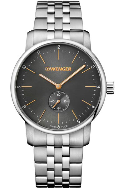 Мужские кварцевые часы Wenger 01.1741.106 коллекции Urban Classic. Калибр механизма — Ronda 1069. Стрелки покрыты люминесцентным напылением (светятся в темноте). Установлено минеральное стекло с сапфировым покрытием (устойчивое к царапинам). Стальной браслет с автоматической застежкой и дополнительным фиксатором. Завинчивающаяся задняя крышка часов. Водонепроницаемость WR100 (10 атм). Швейцарская сборка (Swiss made). Официальная гарантия от производителя — 3 года.