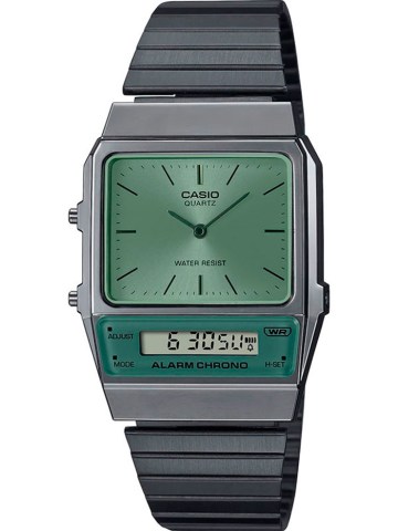 Кварцевые наручные часы Casio AQ-800ECGG-3A с цифровой+стрелочной индикацией времени. Калибр механизма — 5696. Функциональность данной модели: формат времени 12/24, функция двойного времени, автоматический календарь с установкой 28 дней на февраль, будильник, сигнал начала часа, секундомер с точностью 1/100 секунды и измерением до 59 минут 59,99 cек. Стальной браслет. На браслет нанесено стойкое PVD покрытие. Водонепроницаемость WR (3 атм). Размеры корпуса: (ШxВxТ) 32.1x40.7x8.7 мм. Гарантийный срок — 3 года (1 год от производителя + 2 года от магазина).