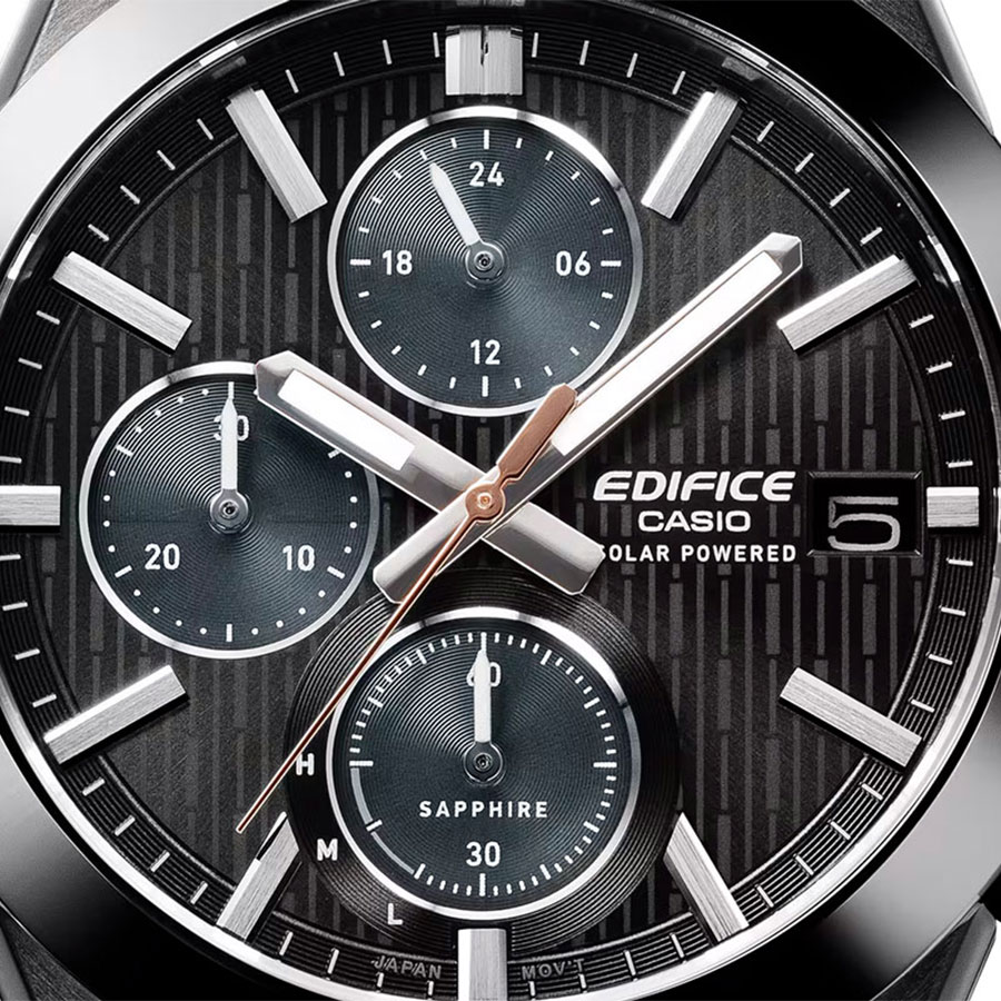Casio Edifice EFS-S650DC-1A — мужские часы, которые сочетают спортивный стиль и современные технологии. Модель работает на солнечной батарее, что избавляет от необходимости замены элементов питания и делает её особенно практичной для повседневного использования.