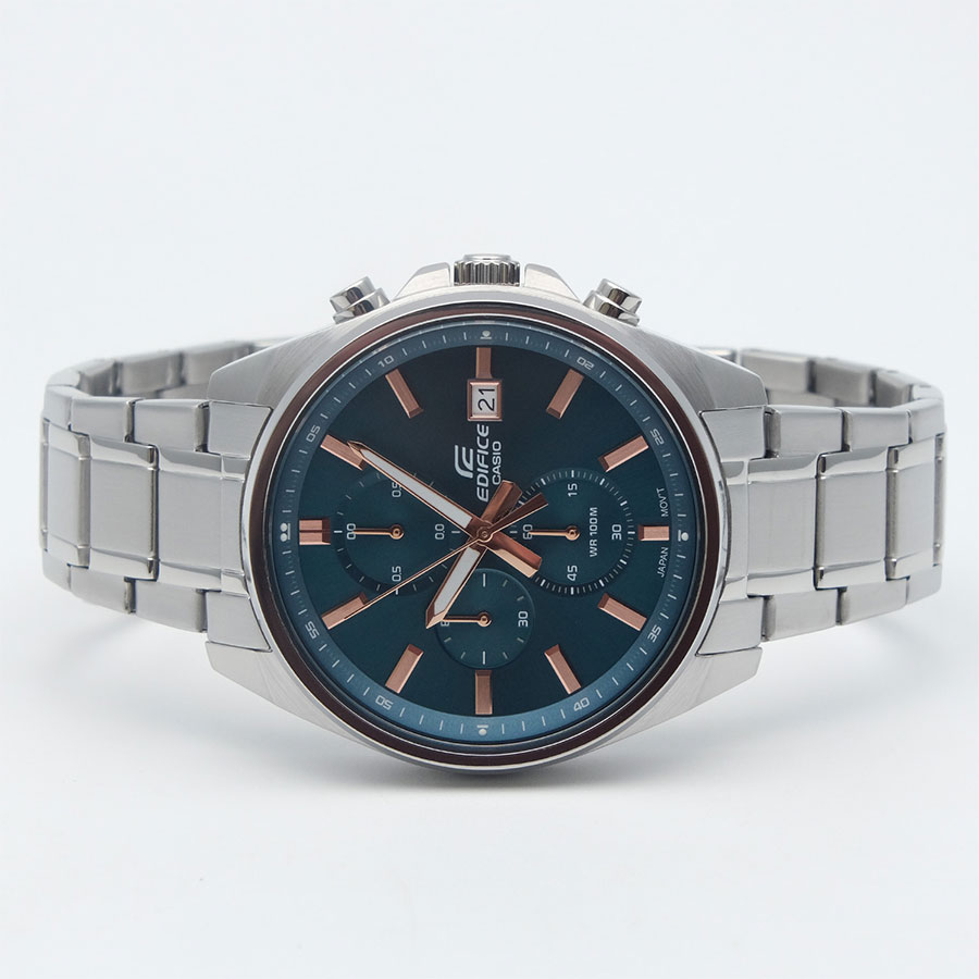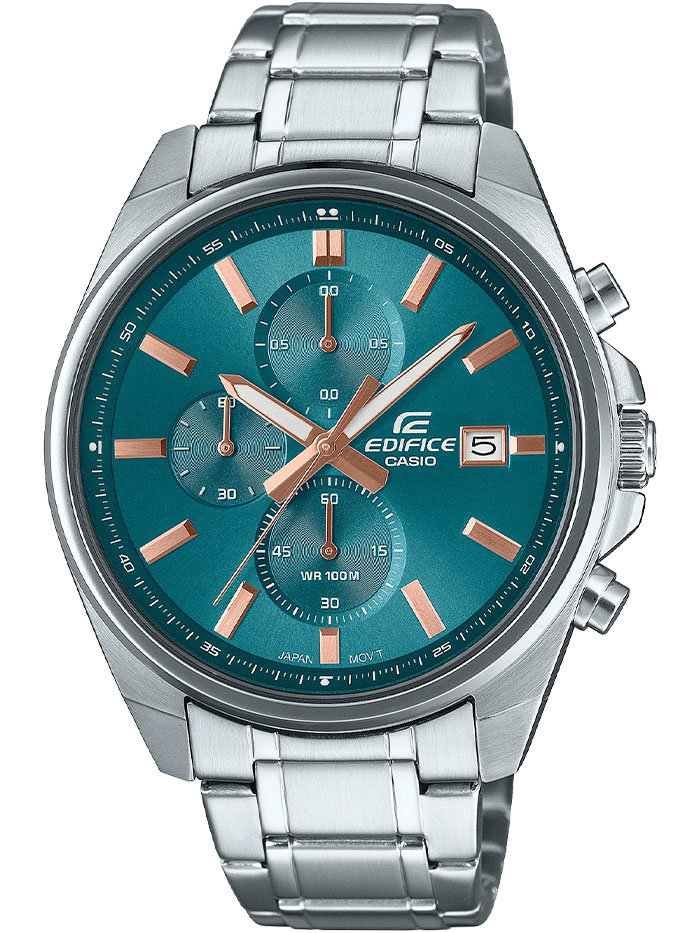 Мужские кварцевые наручные часы с хронографом (секундомером) Casio EFV-610DE-2A. Коллекция Edifice. Калибр механизма — 5345. На данной модели отображается дата. Секундомер может отсчитывать до 59 минут 59 секунд с точностью 1/10 секунды. Стрелки и метки покрыты люминесцентным напылением (светятся в темноте). Завинчивающаяся задняя крышка. Водонепроницаемость WR100 (10 атм). Размеры корпуса: (ШхВхТ) 43.8x48.6x11 мм. Гарантийный срок — 3 года (1 год от производителя + 2 года от магазина).