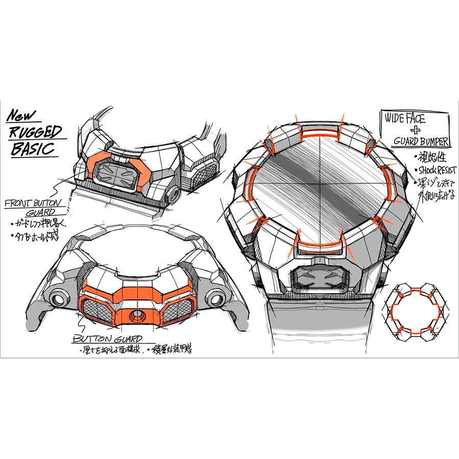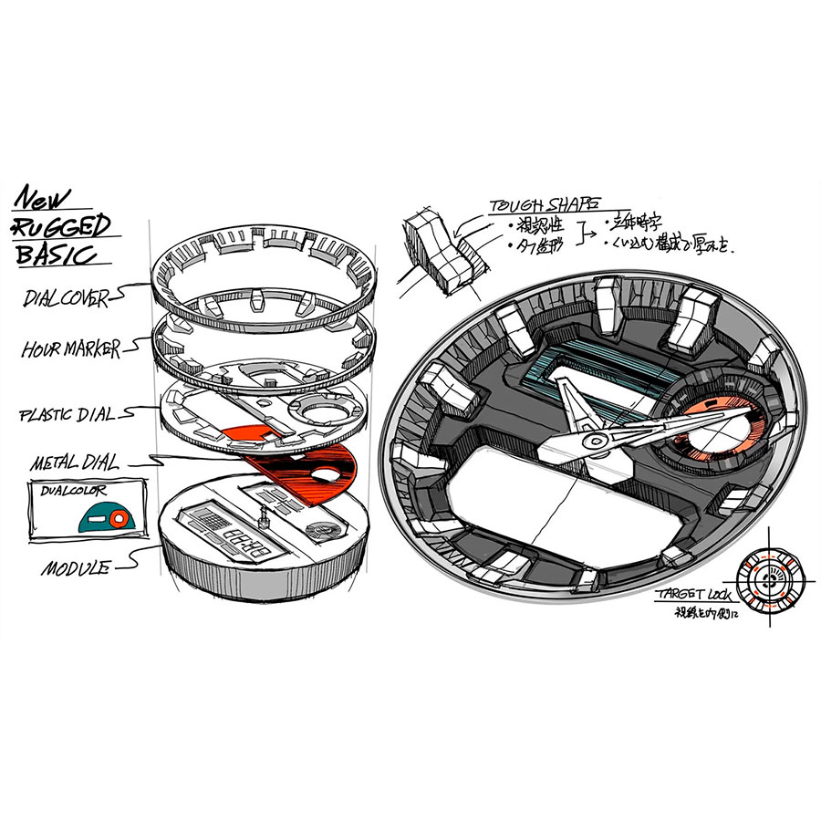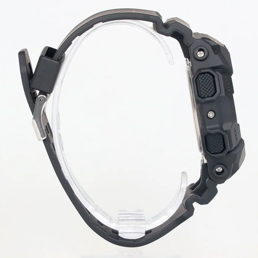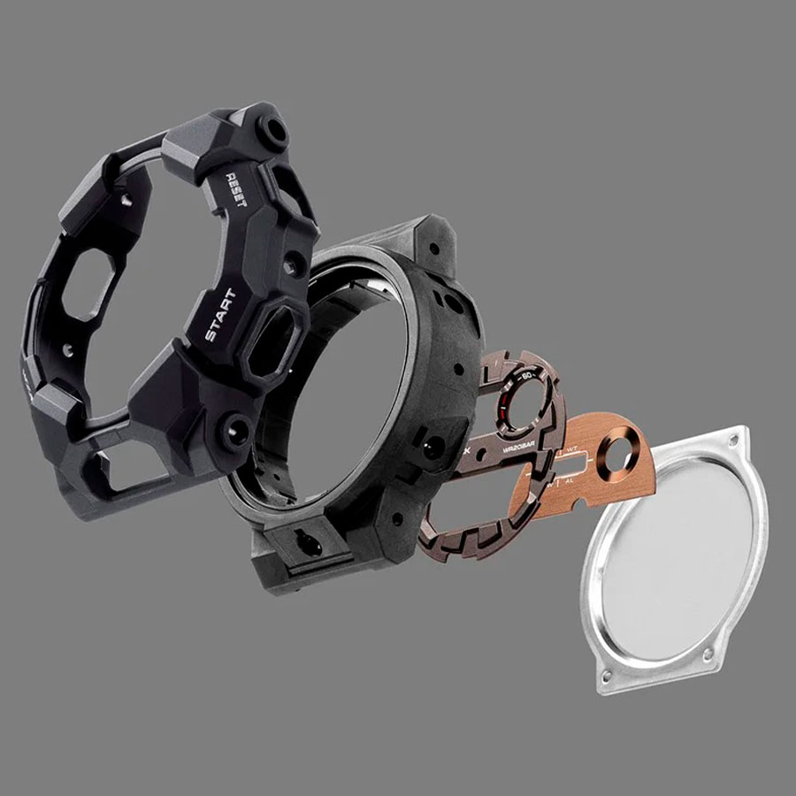 Корпус размером 51.9×55.1×17.5 мм. подчёркивает брутальный характер модели, а водонепроницаемость WR200 (20 атм) позволяет использовать часы при плавании и погружениях без опасений.