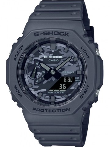 Противоударные кварцевые наручные часы Casio GA-2100VB-1A коллекции G-Shock с цифровой+стрелочной индикацией времени. Тонкий корпус для данной коллекции — 11.8 мм. Калибр механизма — 5611. Корпус усилен углеродным волокном, изготовленным по технологии Carbon Core Guard. Функциональность данной модели: формат времени 12/24, автоматический календарь до 2099 года, функция летнего времени (DST), мировое время 48 городов (29 часовых поясов), 5 независимых будильников, сигнал начала часа, секундомер с точностью 1/100 секунды и измерением до 23 часов 59 минут 59 cек., таймер обратного отсчета (диапазон времени 24 часа), диодная подсветка циферблата, функция выключения звука кнопок (Mute), смещение стрелок для удобного просмотра информации на цифровом экране. Водонепроницаемость WR200 (20 атм). Размеры корпуса: (ШxВxТ) 45.4x48.5x11.8 мм. Гарантийный срок — 3 года (1 год от производителя + 2 года от магазина).