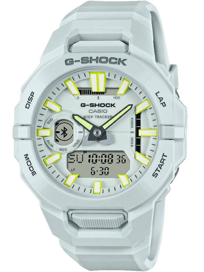 Противоударные кварцевые наручные часы Casio GBA-950-7A коллекции G-Shock с модулем Bluetooth Smart. Калибр механизма — 5737. Данная модель предназначена для занятия бегом и оснащена трехосевым акселерометром для точности считывания движений человека в пространстве. С помощью синхронизации со смартфоном через модуль Bluetooth, приложения G-SHOCK Move® и функции Lifelog можно рассчитать калории и расстояние на основе количества шагов, включая показатель дневного обмена с отображением ежедневных данных: количество шагов, калории, расстояние. Кроме того c помощью приложения возможно установить время в конкретном городе (300 городов), установить точное текущее время, получать уведомления (только звуковой сигнал), просмотреть историю активности, посмотреть пройденный путь с помощью GPS смартфона, а также в случае потери смартфона возможно воспроизвести на нем сигнал. Часы совместимы с сервисом Strava. Функциональность данной модели: шагомер, мировое время, формат времени 12/24, автоматический календарь до 2099 года, функция летнего времени (DST), функция двойного времени, 5 независимых будильников, сигнал начала часа, таймер, секундомер с точностью 1/100 секунды и измерением до 23 часов 59 минут 59,99 cек. и записью данных (до последних 45 записей: месяц начала измерения, дата, час, минута, время прохождения круга/разделения, общее время, дистанция, средний темп, сожженные калории, номер круга, дистанция, средний темп каждого круга / разделения), двойная диодная подсветка циферблата с функцией авто (включается при наклоне часов на 40°) и возможностью выбора времени свечения (1.5 или 3 секунды) + необритовое (Neobrite) покрытие на стрелках и метках для длительного послесвечения в темноте, функция выключения звука нажатия кнопок (Mute), функция сдвига стрелок в нейтральное положение для удобства обзора цифровой индикации, индикация входящих вызовов, функция поиска телефона - при нажатии кнопки на ваших часах смартфон подает звуковой сигнал. Имеется режим полёта. Водонепроницаемость WR200 (20 атм). Размеры корпуса: (ШxВxТ) 48.5x43.9x16 мм. Гарантийный срок — 3 года (1 год от производителя + 2 года от магазина).