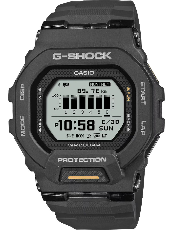 Мужские наручные часы Casio GBD-200-1A1 из коллекции G-Shock — это прочная и высокотехнологичная модель с цифровой индикацией времени, созданная для активного образа жизни. Часы оснащены шагомером и возможностью подключения к смартфону через Bluetooth® Smart, что позволяет вести учет физической активности и управлять настройками с приложения G-SHOCK Move®.