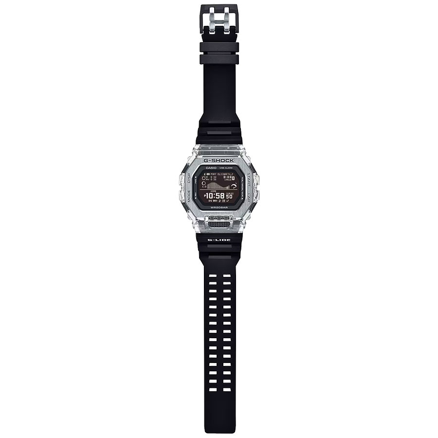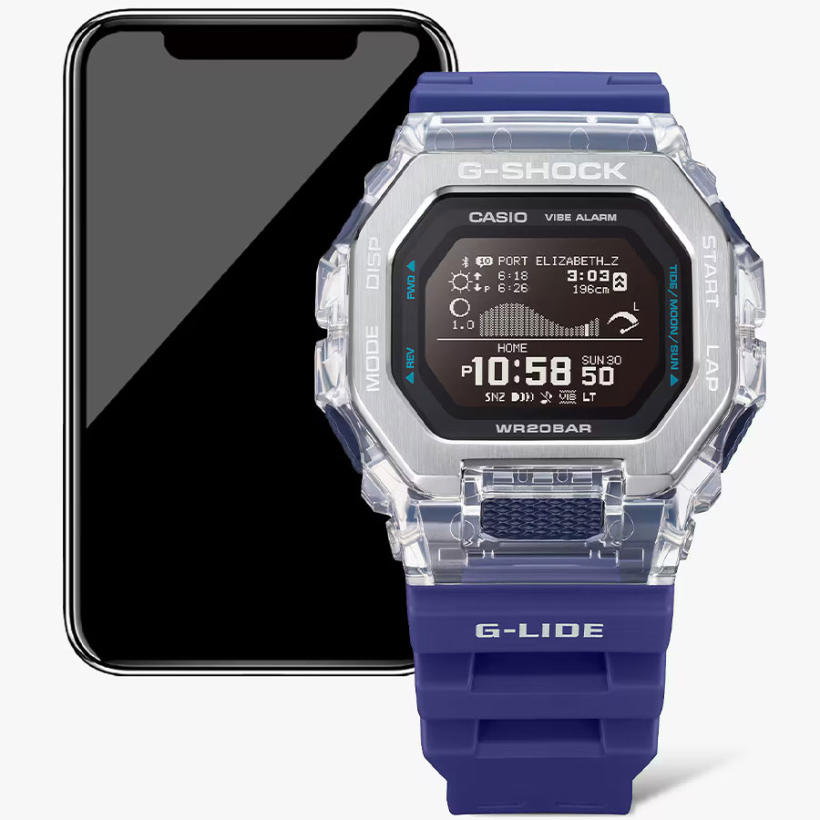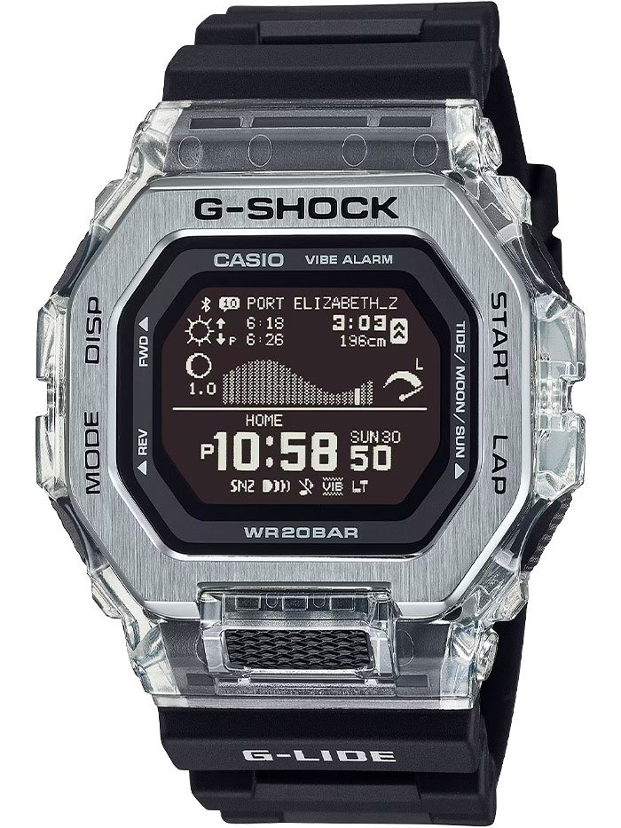 Противоударные мужские кварцевые наручные часы Casio GBX-100S-1 коллекции G-Shock с модулем Bluetooth Smart. Калибр механизма — 3482. С помощью синхронизации со смартфоном через модуль Bluetooth и приложения G-SHOCK Move® можно увидеть график активности в метаболическом эквиваленте за день, неделю или месяц. Часы совместимы с сервисом Strava. Датчик движения (Акселерометр) реагирует на ускорение, а затем отображает полученные данные как скорость на экране дисплея. Кроме того, датчик поддерживает функцию автоматического поворота часов, гарантируя, что изображение на экране всегда будет иметь нужную ориентацию. На экране отображается фаза луны, исходя из Ваших текущих данных широты и долготы. Датчик приливов и отливов - при введении координат для определенного места, часы смогут показывать фазы прилива и отлива на этом месте в выбранную дату. Например, эта информация очень полезна, если нужно заранее знать время приливов и отливов в точке назначения. Функциональность данной модели: Шагомер, возраст/фаза луны для определенной даты, датчик приливов и отливов, акселерометр, формат времени 12/24, автоматический календарь до 2099 года, функция летнего времени (DST), мировое время в 38 городах (38 часовых поясов), 4 независимых будильника, таймер (5 наборов по 20 сетов), секундомер с точностью 1/100 секунды и измерением до 23 часов 59 минут 59,99 cек., диодная подсветка циферблата с функцией авто (включается при наклоне часов на 40°), функция выключения звука нажатия кнопок (Mute), функция поиска телефона - при нажатии кнопки на ваших часах смартфон подает звуковой сигнал, функция "авиарежим".  Уведомления с функцией вибро о новых/пропущенных звонках, сообщениях, email письмах и напоминаний из расписания. Режим энергосбережения (дисплей гаснет для экономии энергии на 3 часа каждый день.) Стальной безель. Водонепроницаемость WR200 (20 атм). Размеры корпуса: (ШxВxТ) 46x50.9x14.7 мм. Гарантийный срок — 3 года (1 год от производителя + 2 года от магазина).