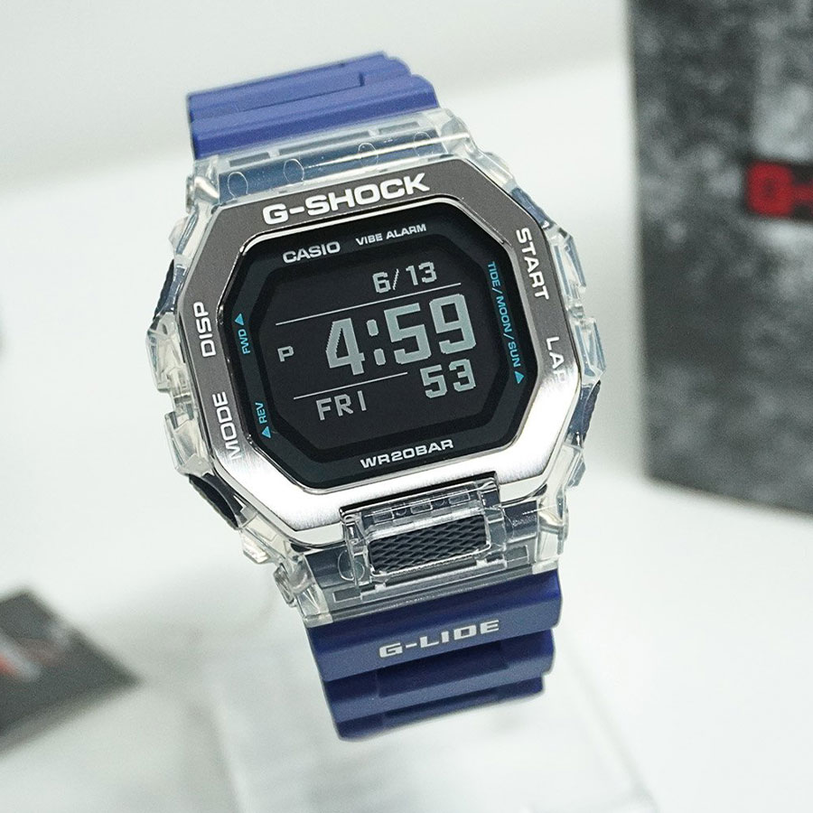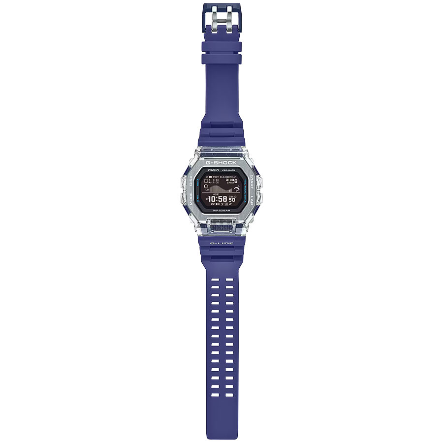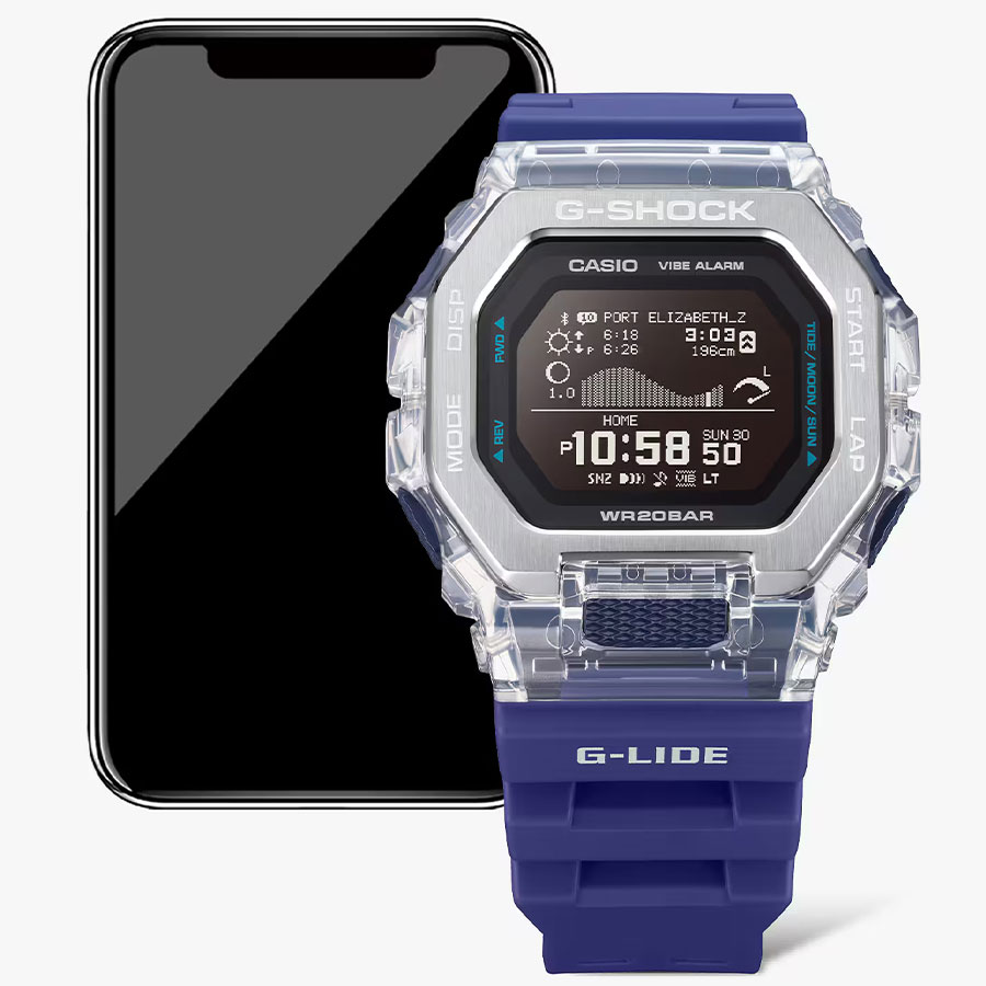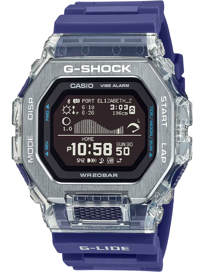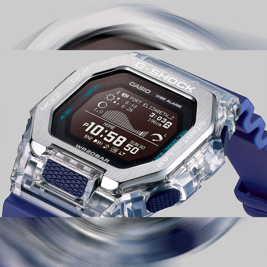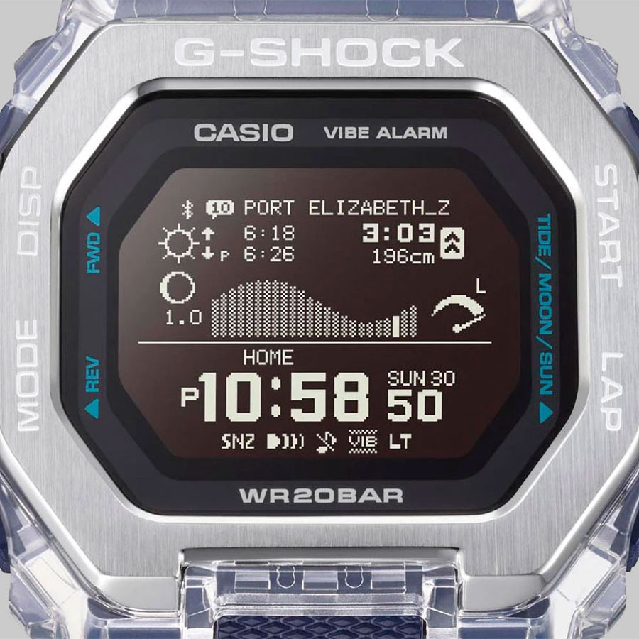 Противоударные мужские кварцевые наручные часы Casio GBX-100S-2 коллекции G-Shock с модулем Bluetooth Smart. Калибр механизма — 3482. С помощью синхронизации со смартфоном через модуль Bluetooth и приложения G-SHOCK Move® можно увидеть график активности в метаболическом эквиваленте за день, неделю или месяц. Часы совместимы с сервисом Strava. Датчик движения (Акселерометр) реагирует на ускорение, а затем отображает полученные данные как скорость на экране дисплея. Кроме того, датчик поддерживает функцию автоматического поворота часов, гарантируя, что изображение на экране всегда будет иметь нужную ориентацию. На экране отображается фаза луны, исходя из Ваших текущих данных широты и долготы. Датчик приливов и отливов - при введении координат для определенного места, часы смогут показывать фазы прилива и отлива на этом месте в выбранную дату. Например, эта информация очень полезна, если нужно заранее знать время приливов и отливов в точке назначения. Функциональность данной модели: Шагомер, возраст/фаза луны для определенной даты, датчик приливов и отливов, акселерометр, формат времени 12/24, автоматический календарь до 2099 года, функция летнего времени (DST), мировое время в 38 городах (38 часовых поясов), 4 независимых будильника, таймер (5 наборов по 20 сетов), секундомер с точностью 1/100 секунды и измерением до 23 часов 59 минут 59,99 cек., диодная подсветка циферблата с функцией авто (включается при наклоне часов на 40°), функция выключения звука нажатия кнопок (Mute), функция поиска телефона - при нажатии кнопки на ваших часах смартфон подает звуковой сигнал, функция "авиарежим".  Уведомления с функцией вибро о новых/пропущенных звонках, сообщениях, email письмах и напоминаний из расписания. Режим энергосбережения (дисплей гаснет для экономии энергии на 3 часа каждый день.) Стальной безель. Водонепроницаемость WR200 (20 атм). Размеры корпуса: (ШxВxТ) 46x50.9x14.7 мм. Гарантийный срок — 3 года (1 год от производителя + 2 года от магазина).