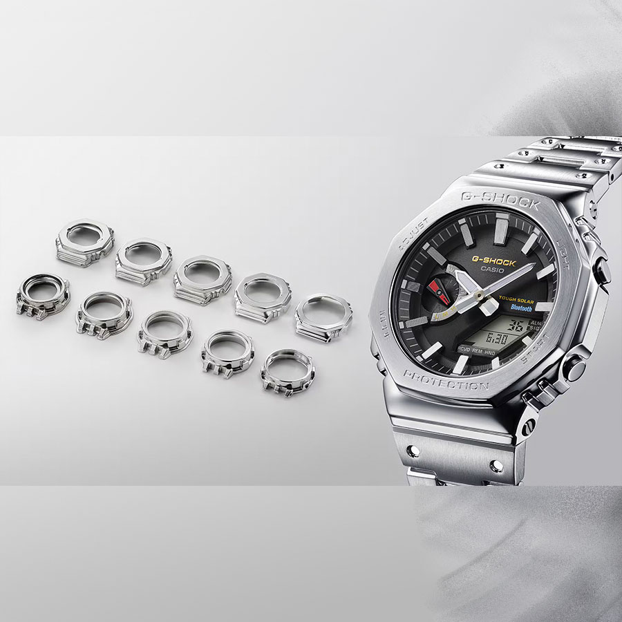 Корпус и браслет выполнены из нержавеющей стали, завинчивающаяся задняя крышка повышает герметичность. Модуль часов защищён амортизирующим материалом alphaGEL, что делает модель ещё более устойчивой к ударам и вибрации. Водонепроницаемость WR200 (20 атм) позволяет использовать часы для плавания и занятий водными видами спорта.