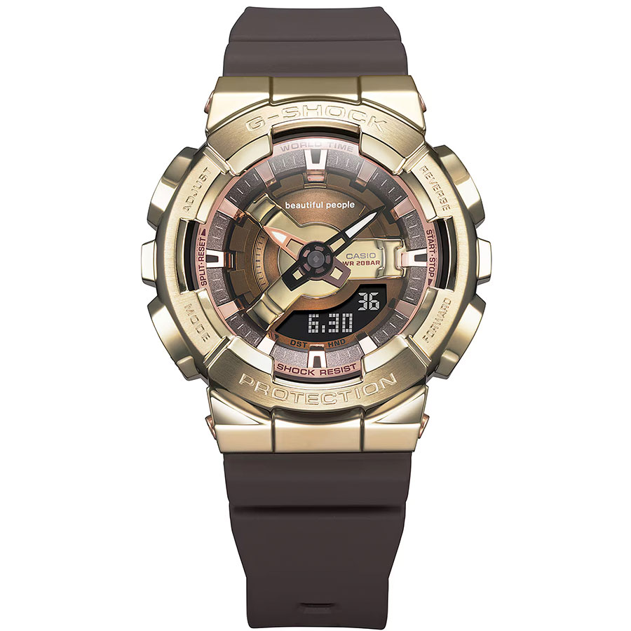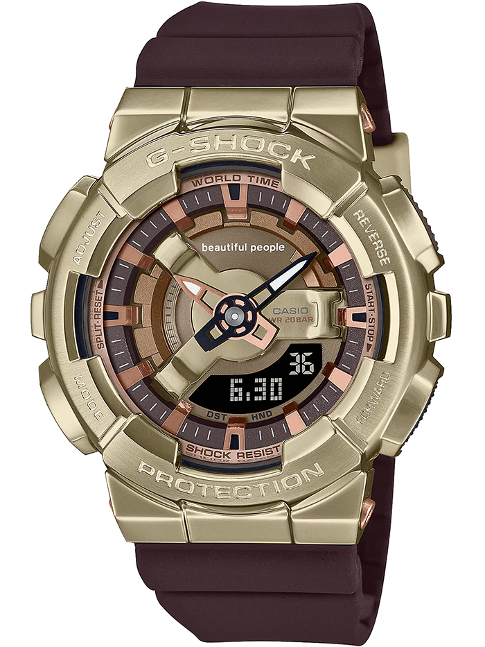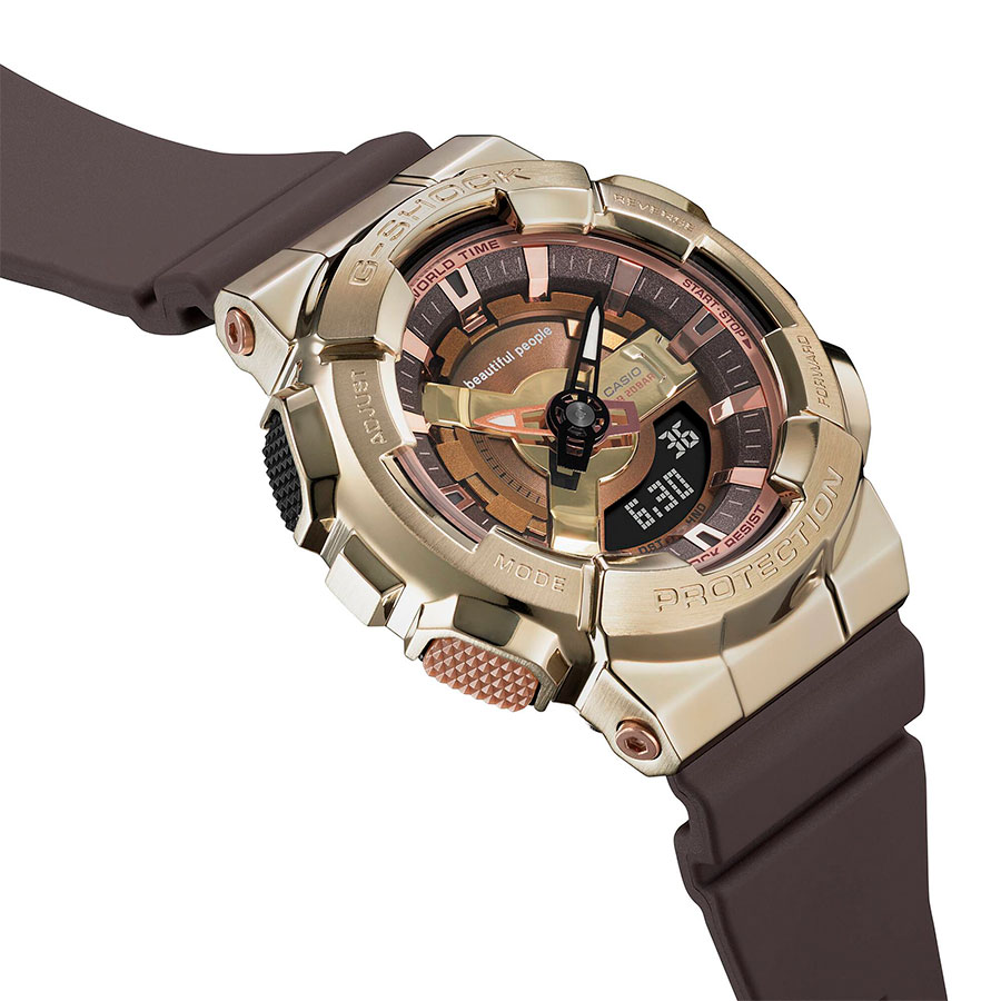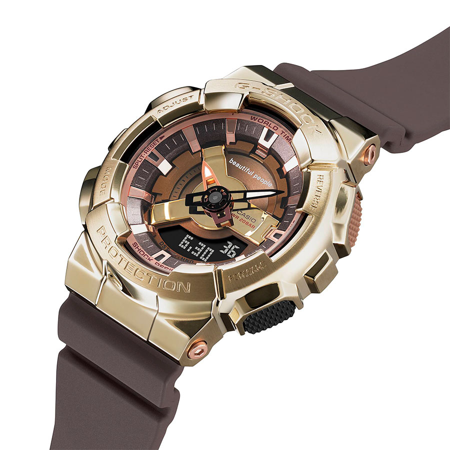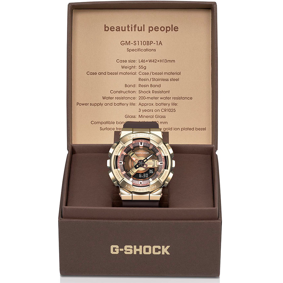 Противоударные женские кварцевые наручные часы Casio GM-S110BP-5A коллекции G-Shock с цифровой+стрелочной индикацией времени.