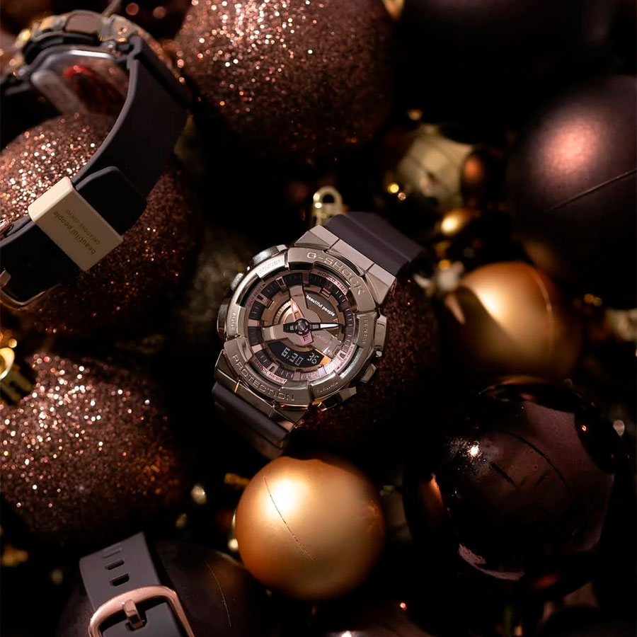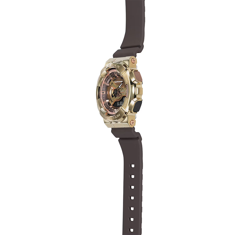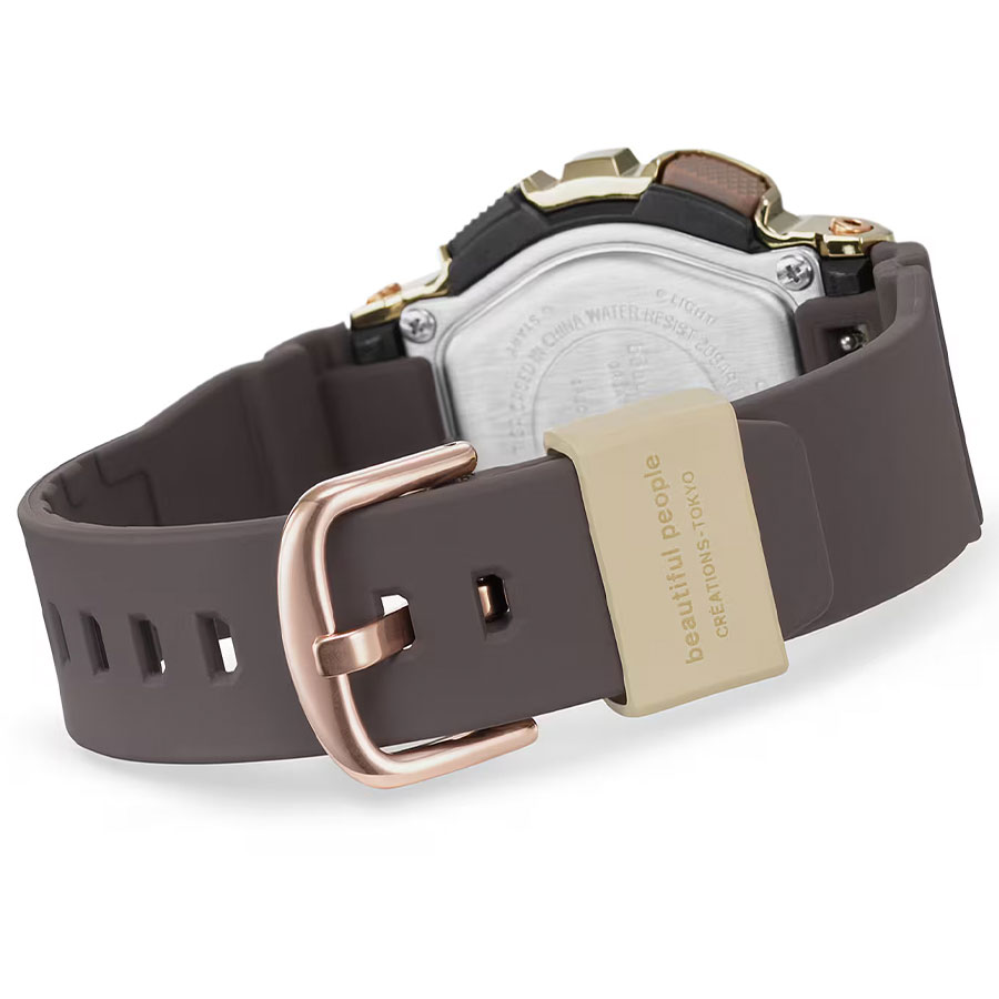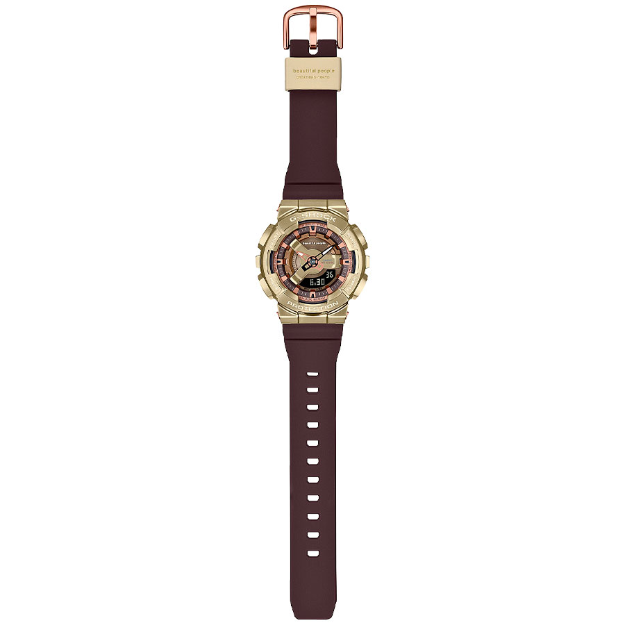 Противоударные женские кварцевые наручные часы Casio GM-S110BP-5A коллекции G-Shock с цифровой+стрелочной индикацией времени.