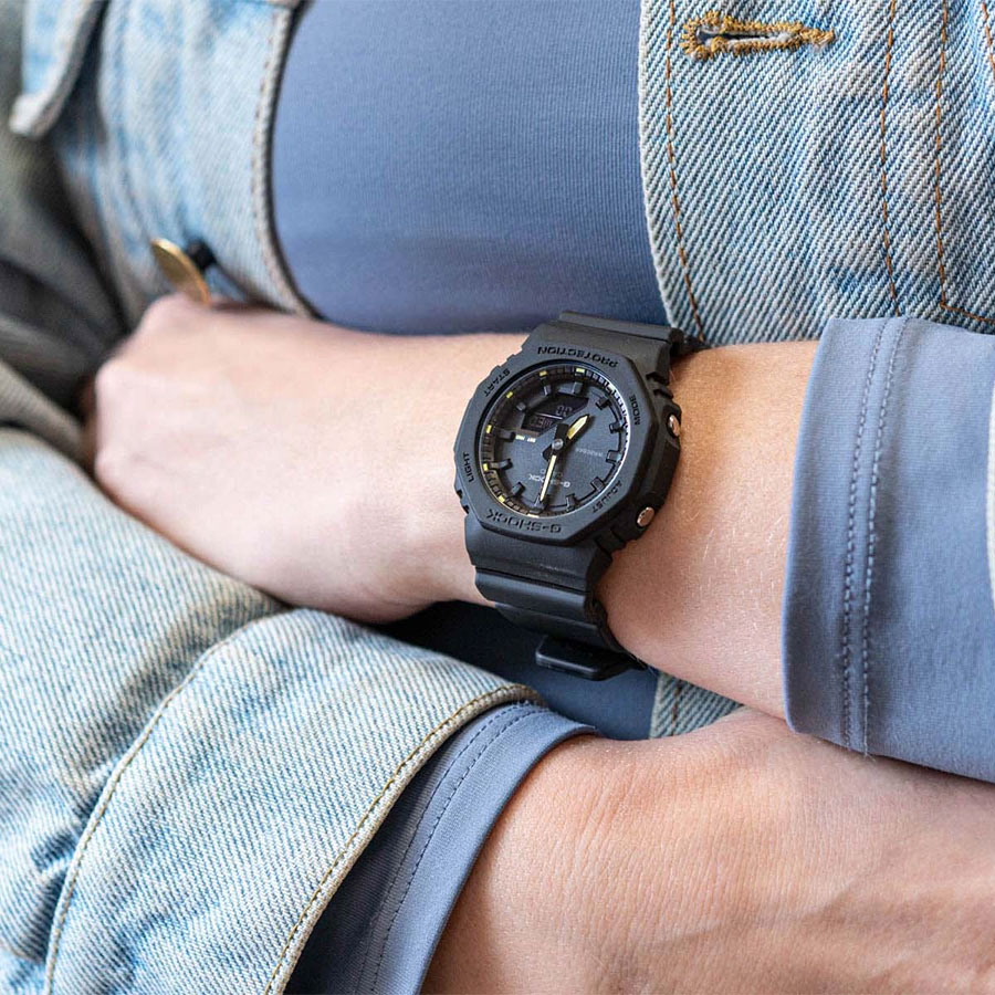 Женские часы Casio G-Shock GMA-P2100SA-1A2 — это стильная модель с аналогово-цифровой индикацией, разработанная специально для запястий меньшего размера. Ультратонкий корпус толщиной всего 11,2 мм. делает часы одними из самых компактных и удобных в коллекции G-Shock.