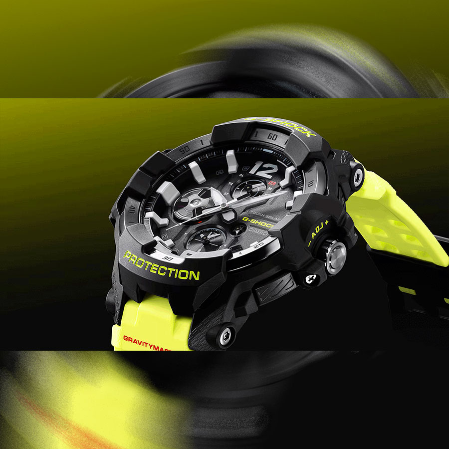 Функциональность данной модели: режим сохранения энергии, индикатор заряда батареи, отображение времени суток в 24-х часовом формате, отображение даты и дня недели, автоматический календарь до 2099 года, функция летнего времени (DST), двойное время, мировое время, журнал полетов, будильник, секундомер с точностью 1 секунда и измерением до 23 часов 59 минут 59,99 cек., таймер обратного отсчета с шагом 1 секунда в диапазоне времени 24 часа, диодная подсветка циферблата (Super Illuminator) с функцией послесвечения + необритовое (Neobrite) покрытие на стрелках и метках для длительного послесвечения в темноте. Ударопрочная ащитная конструкция корпуса из углеродного волокна и пластика. Полимерный ремешок. Завинчивающаяся заводная головка. Водонепроницаемость WR200 (20 атм). Размеры корпуса: (ШxВxТ) 54.7x59x15.7 мм Гарантийный срок — 3 года (1 год от производителя + 2 года от магазина).