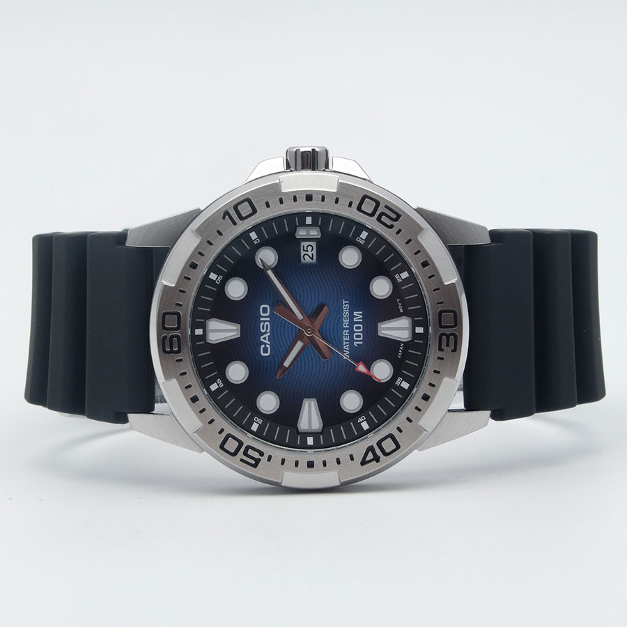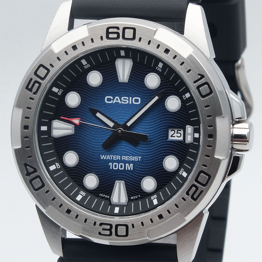 Мужские кварцевые часы Casio MTD-140-2A. Калибр механизма — 5664. На циферблате отображается текущая дата. Стрелки и метки покрыты люминесцентным напылением (светятся в темноте). Полимерный ремешок. Водонепроницаемость WR100 (10 атм). Размеры корпуса: (ШxВxТ) 43.7x48.4x9.5 мм. Гарантийный срок — 3 года (1 год от производителя + 2 года от магазина).