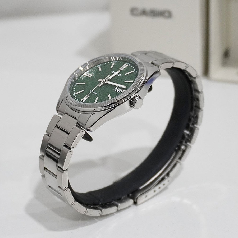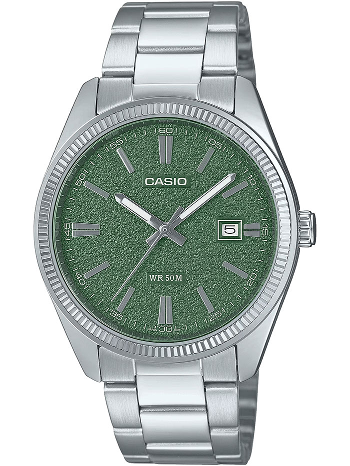 Мужские кварцевые наручные часы Casio MTP-1302DA-3A. Калибр механизма — 2784. На данной модели отображается текущая дата. Стрелки покрыты люминесцентным напылением (светятся в темноте). Стальной браслет. Водонепроницаемость WR50 (5 атм). Размеры корпуса: (ШxВxТ) 38.5x44.2x9.2 мм. Гарантийный срок — 3 года (1 год от производителя + 2 года от магазина).