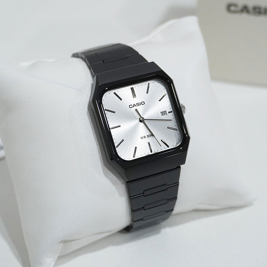 Мужские кварцевые наручные часы Casio MTP-B185B-7A. Калибр механизма — 5436. На данной модели отображается текущая дата. Стальной браслет. На корпус и браслет нанесено стойкое PVD покрытие. Водонепроницаемость WR50 (5 атм). Размеры корпуса: (ШxВxТ) 32.5x40x7.3 мм. Гарантийный срок — 3 года (1 год от производителя + 2 года от магазина).