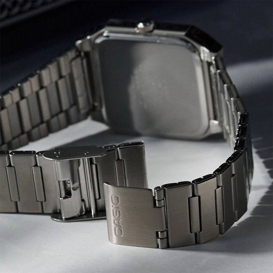 Корпус и браслет выполнены из нержавеющей стали, что подчёркивает долговечность модели и придаёт ей строгий характер. Чёрный циферблат удачно сочетается с металлическим блеском браслета, а минеральное стекло надёжно защищает поверхность от случайных повреждений.