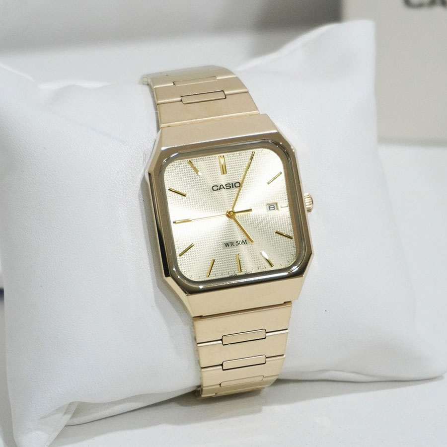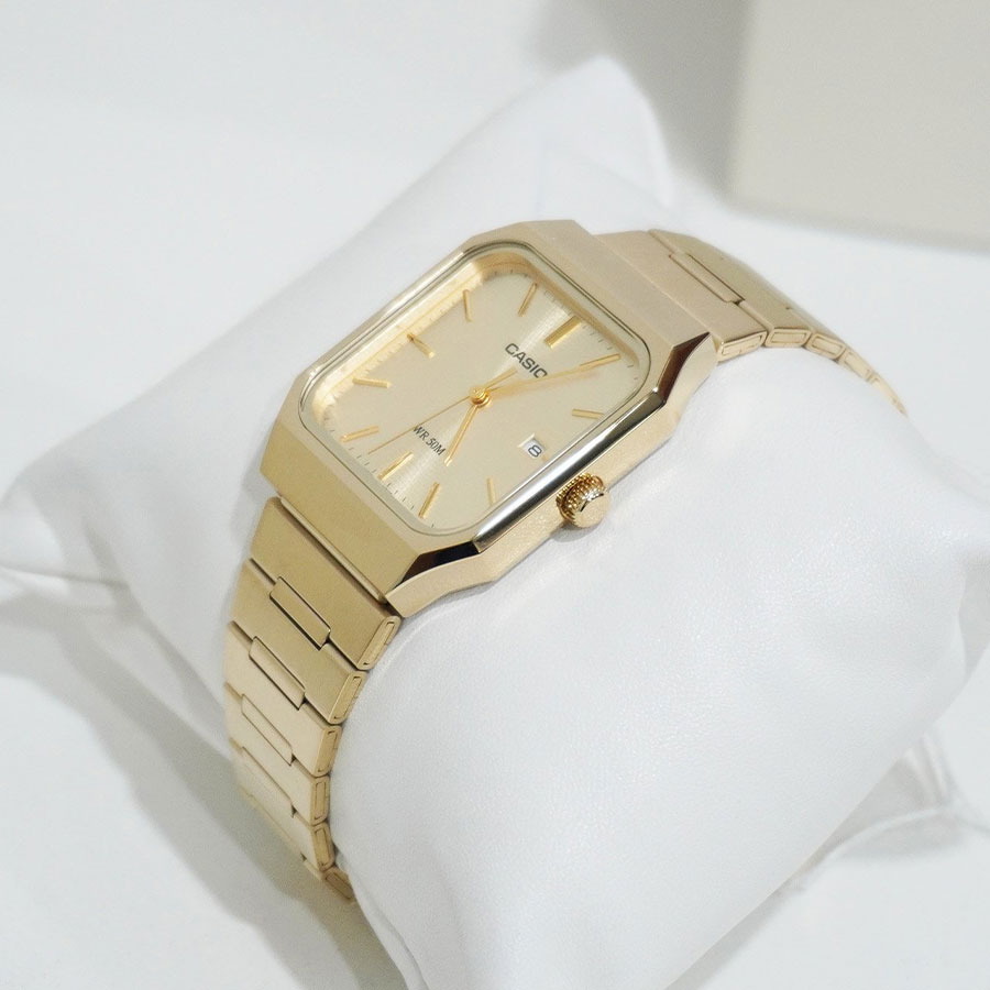 Мужские кварцевые наручные часы Casio MTP-B185G-9A. Калибр механизма — 5436. На данной модели отображается текущая дата. Стальной браслет. На корпус и браслет нанесено стойкое PVD покрытие. Водонепроницаемость WR50 (5 атм). Размеры корпуса: (ШxВxТ) 32.5x40x7.3 мм. Гарантийный срок — 3 года (1 год от производителя + 2 года от магазина).