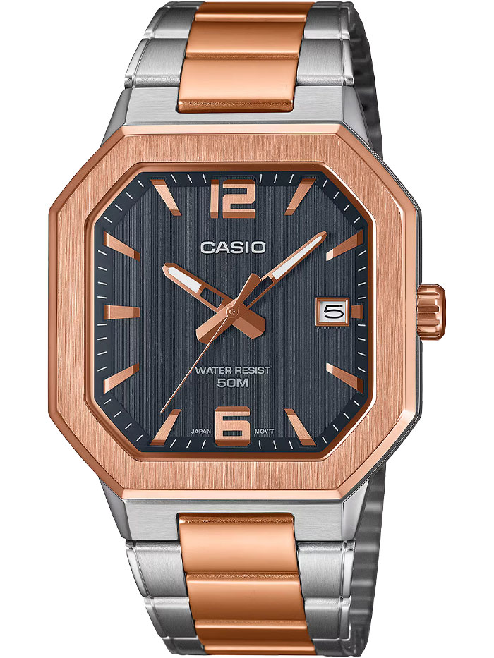 В основе модели используется кварцевый механизм Casio калибра 5664, обеспечивающий точный и стабильный ход без необходимости подзавода. На циферблате расположено окно текущей даты, которое повышает удобство ежедневного использования.