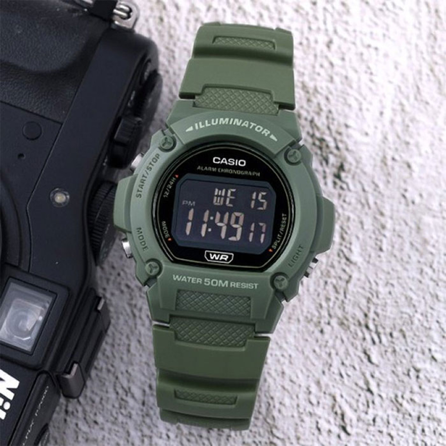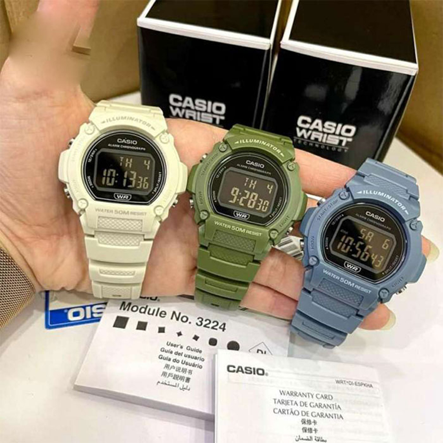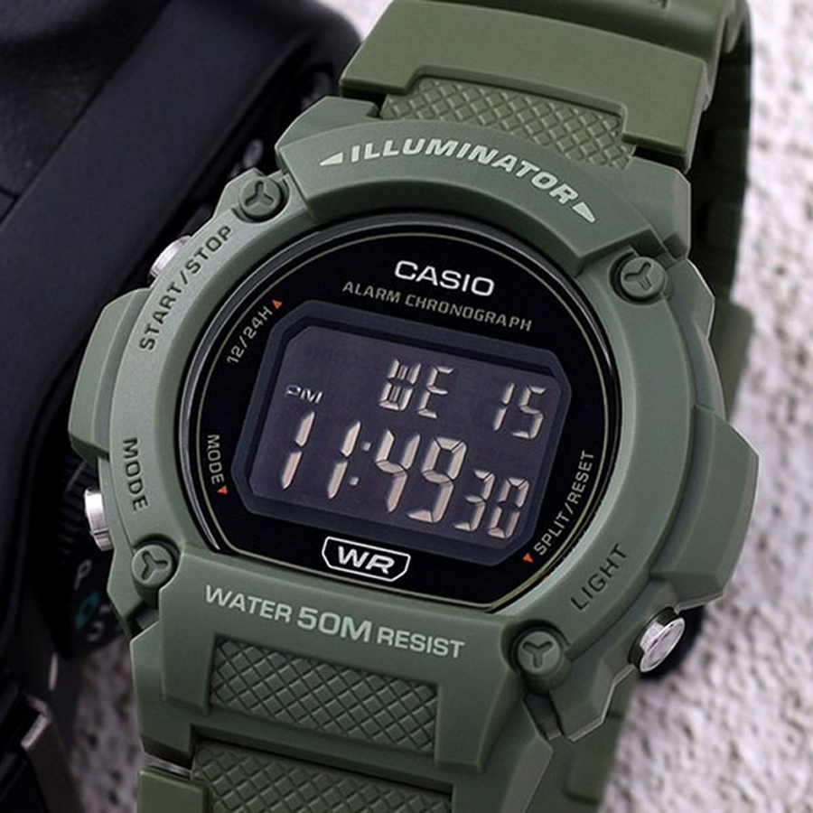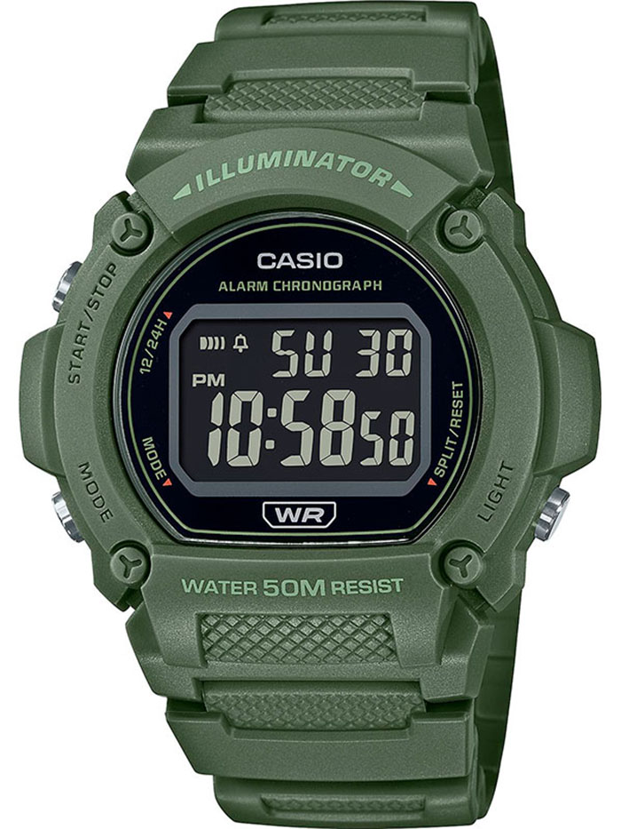 Электронные кварцевые наручные часы Casio W-219HC-3B с цифровой индикацией времени. Калибр механизма — 3224. Функциональность данной модели: формат времени 12/24, автоматический календарь до 2099 года, будильник, сигнал начала часа, секундомер с точностью 1/100 секунды и измерением до 59 минут 59,99 cек., диодная подсветка циферблата. Водонепроницаемость WR50 (5 атм). Размеры корпуса: (ШxВxТ) 47.1x48.1x13.9 мм. Гарантийный срок — 3 года (1 год от производителя + 2 года от магазина).