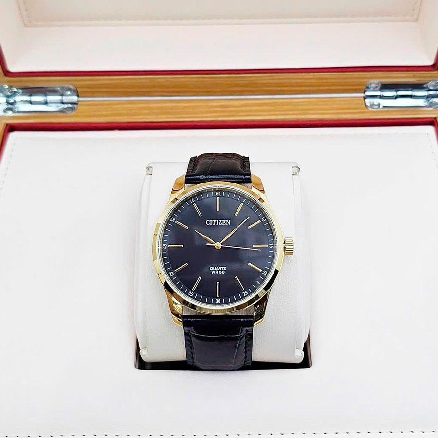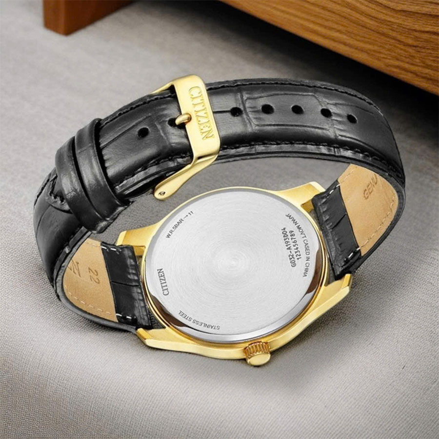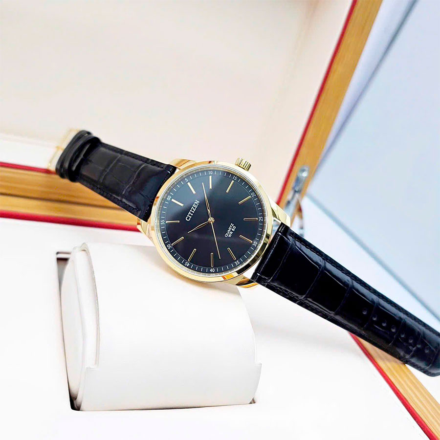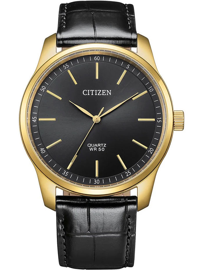 Мужские кварцевые наручные часы Citizen BH5002-02E коллекции Basic. Калибр механизма — G032. Кожаный ремешок. На корпус нанесено стойкое PVD покрытие. Водонепроницаемость WR50 (5 атм).