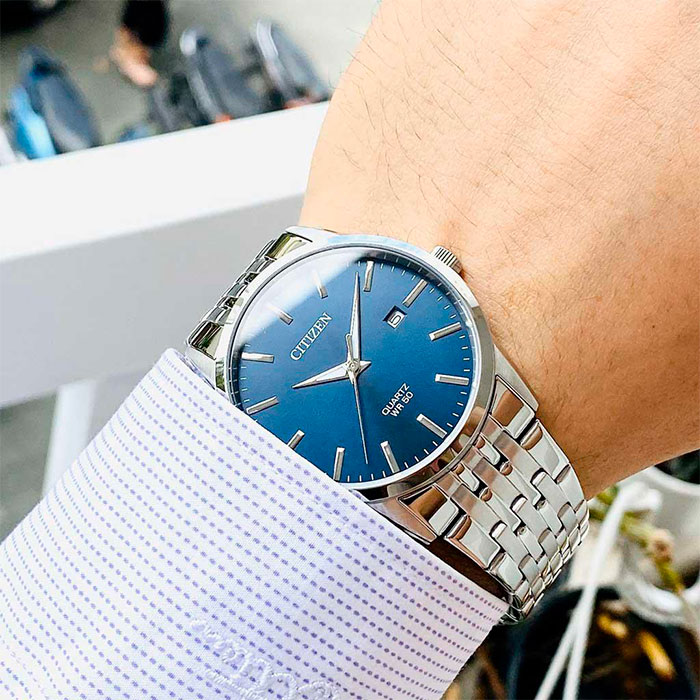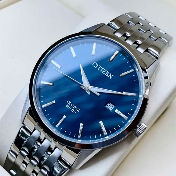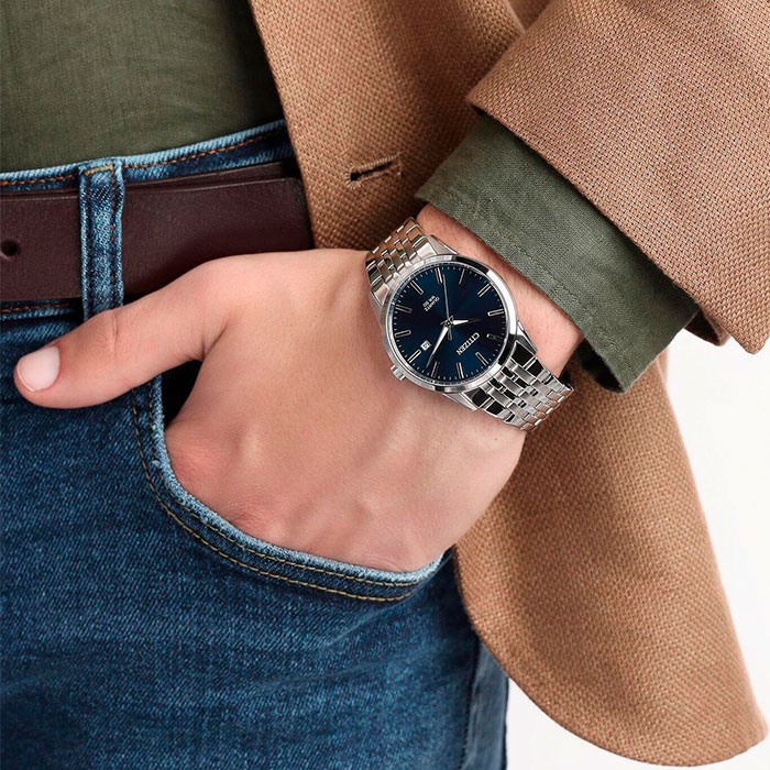 Мужские кварцевые наручные часы Citizen BI5000-87L коллекции Basic. Калибр механизма — G111. На данной модели отображается текущая дата. Стрелки покрыты люминесцентным напылением (светятся в темноте). Стальной браслет. Водонепроницаемость WR50 (5 атм).
