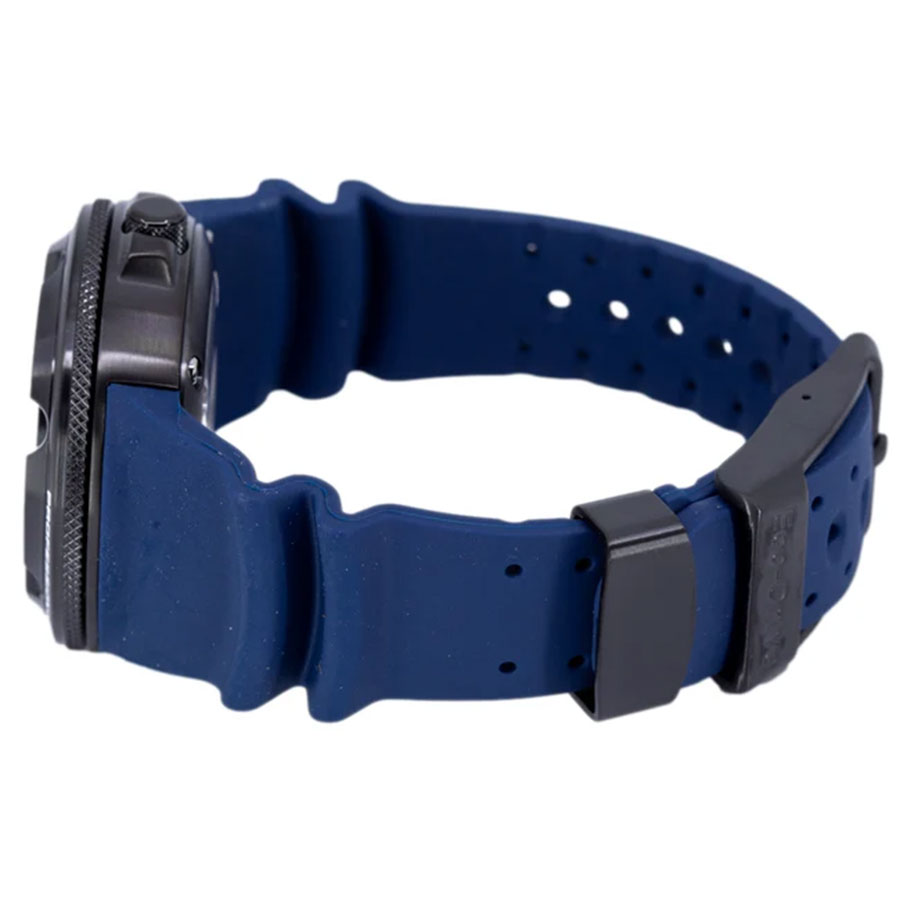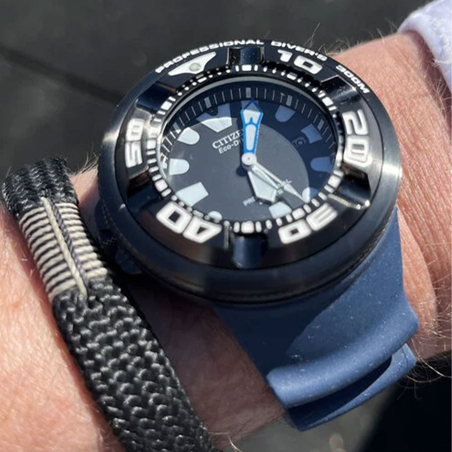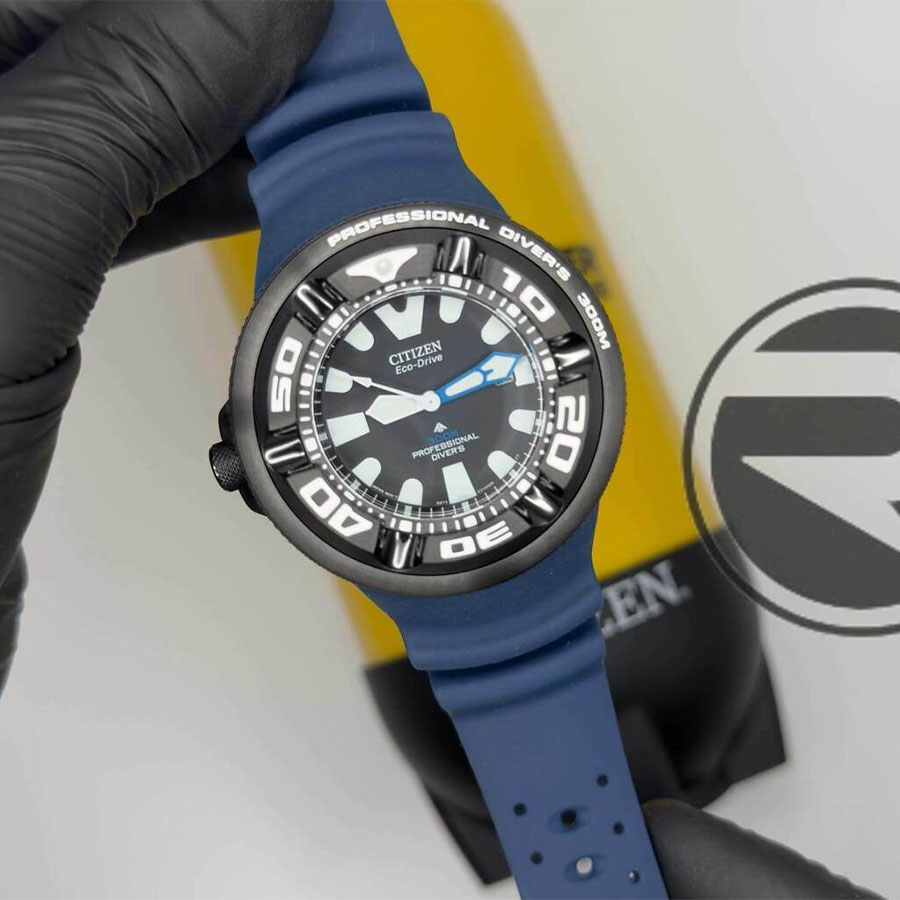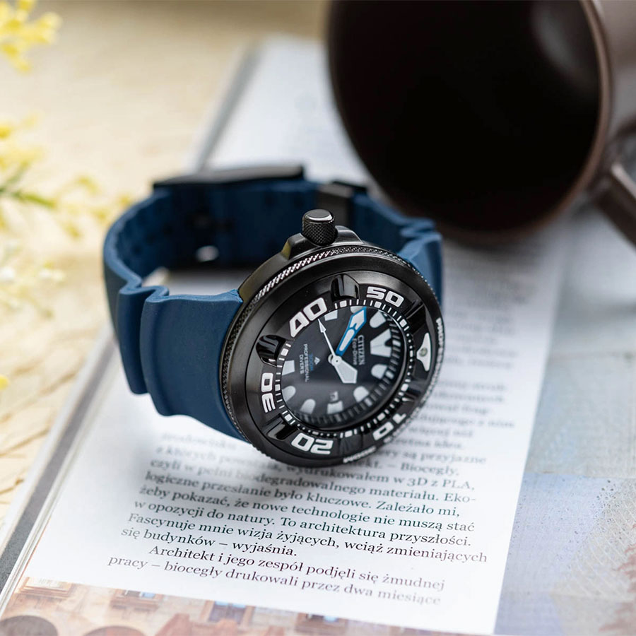 Мужские кварцевые наручные часы на солнечной батарее Citizen BJ8055-04E коллекции Eco-Drive Promaster Professional Diver. Калибр механизма — B873. Аккумулятор данной модели заряжается от любого источника света. Срок работы аккумулятора с полным зарядом — около 6-ти месяцев. Примерный срок службы аккумулятора — 10 лет. Присутствует функция информирования о недостаточном заряде и функция защиты от перезаряда. На данной модели отображается дата. Вращающийся в одном направлении безель. Данная модель является профессиональными дайверскими часами, обладает высокой степенью водонепроницаемости WR300 (30 атм), подходит для глубокого погружения под воду и соответствует стандарту дайверских часов ISO 6425. Завинчивающаяся задняя крышка и заводная головка. Стрелки и метки покрыты люминесцентным напылением (светятся в темноте). На корпус нанесено стойкое PVD покрытие. Полиуретановый ремешок.