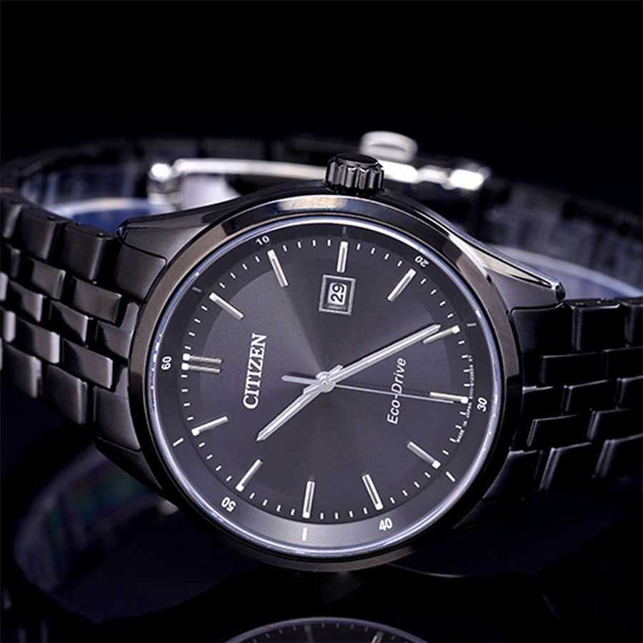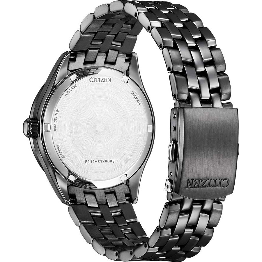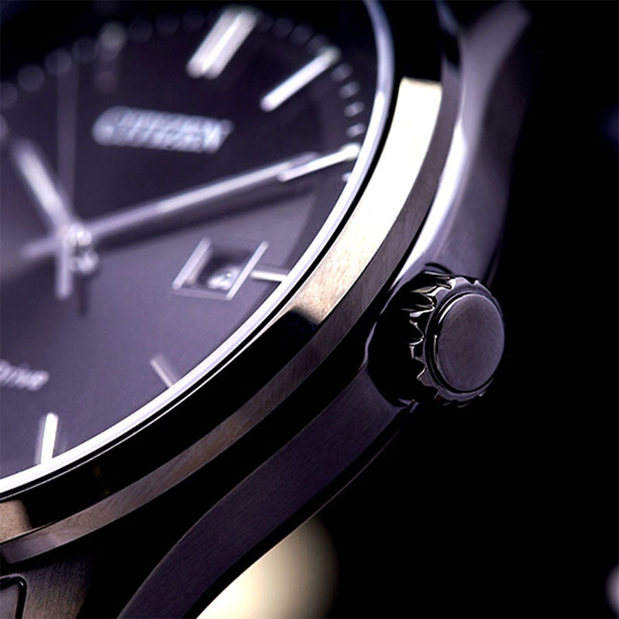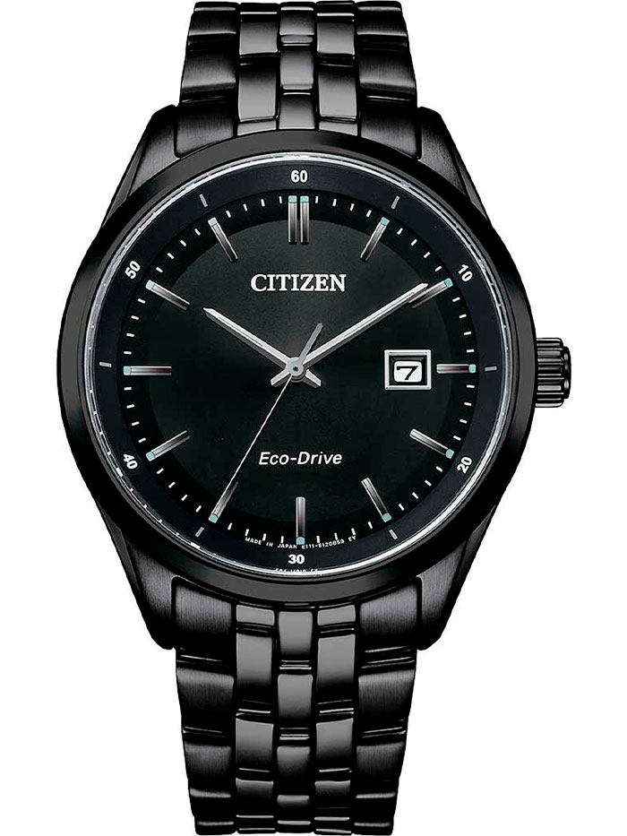 Мужские кварцевые наручные часы на солнечной батарее Citizen BM7565-80E коллекции Eco-Drive. Калибр механизма — E111. Аккумулятор данной модели заряжается от любого источника света. Срок работы аккумулятора с полным зарядом — до 180 дней. Примерный срок службы аккумулятора — 10 лет. Присутствует функция информирования о недостаточном заряде и функция предотвращения перезаряда. На данной модели отображается дата. Сапфировое стекло, устойчивое к появлению царапин. Стрелки и метки покрыты люминесцентным напылением (светятся в темноте). Стальной браслет. На корпус и браслет нанесено стойкое PVD покрытие. Водонепроницаемость WR100 (10 атм).