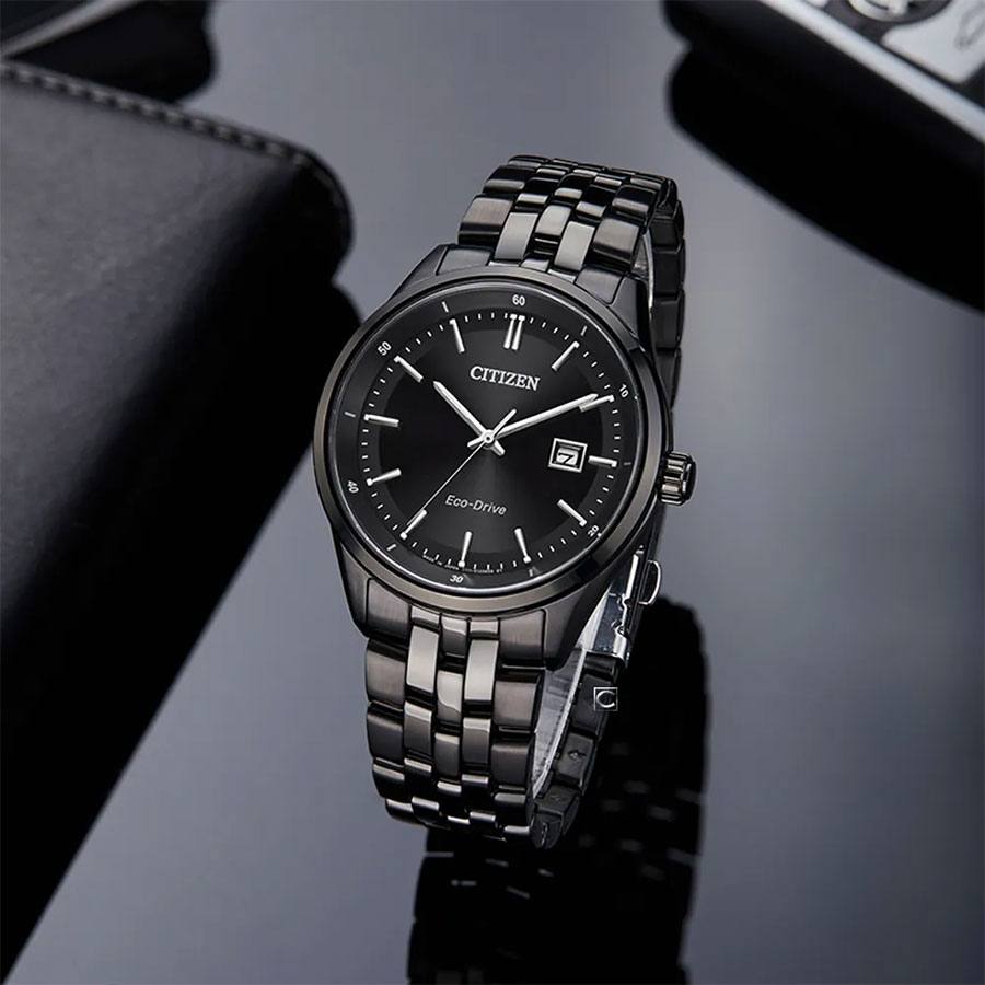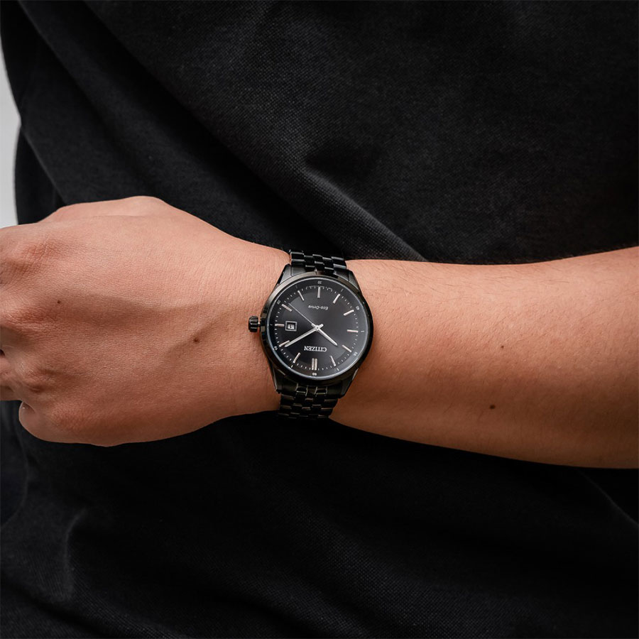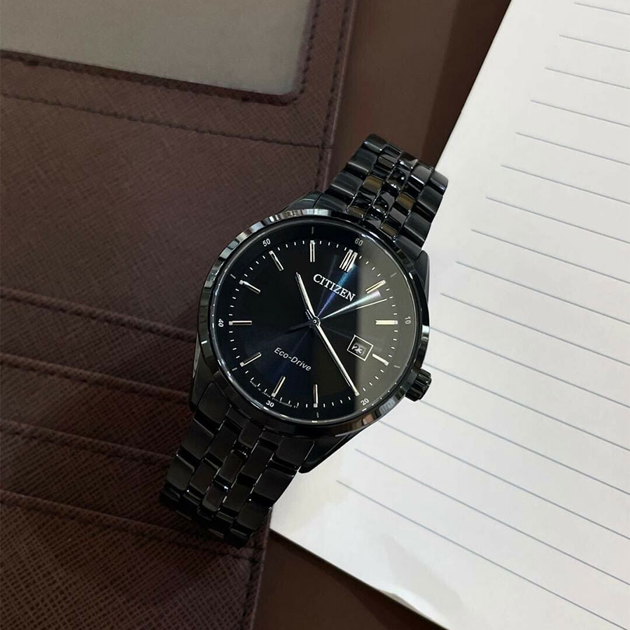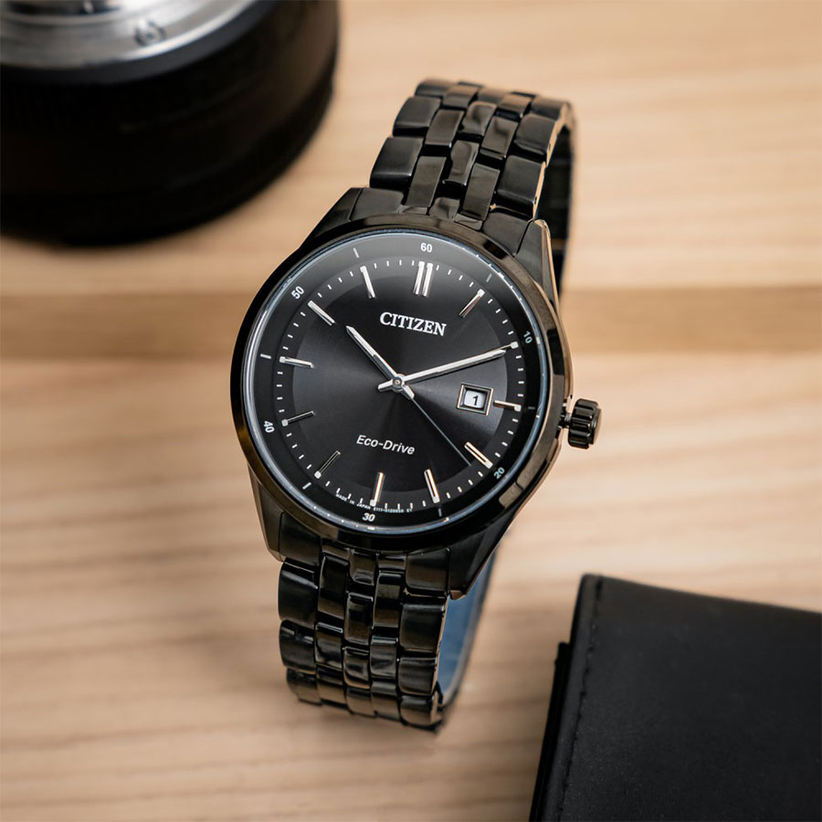 Мужские кварцевые наручные часы на солнечной батарее Citizen BM7565-80E коллекции Eco-Drive. Калибр механизма — E111. Аккумулятор данной модели заряжается от любого источника света. Срок работы аккумулятора с полным зарядом — до 180 дней. Примерный срок службы аккумулятора — 10 лет. Присутствует функция информирования о недостаточном заряде и функция предотвращения перезаряда. На данной модели отображается дата. Сапфировое стекло, устойчивое к появлению царапин. Стрелки и метки покрыты люминесцентным напылением (светятся в темноте). Стальной браслет. На корпус и браслет нанесено стойкое PVD покрытие. Водонепроницаемость WR100 (10 атм).
