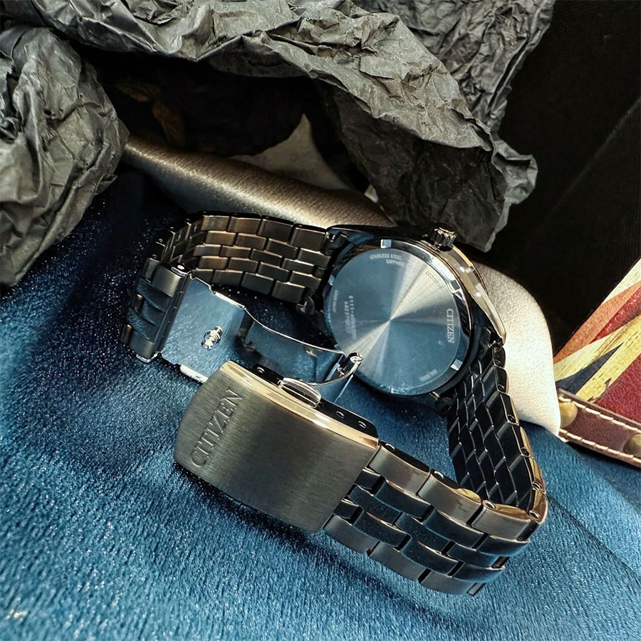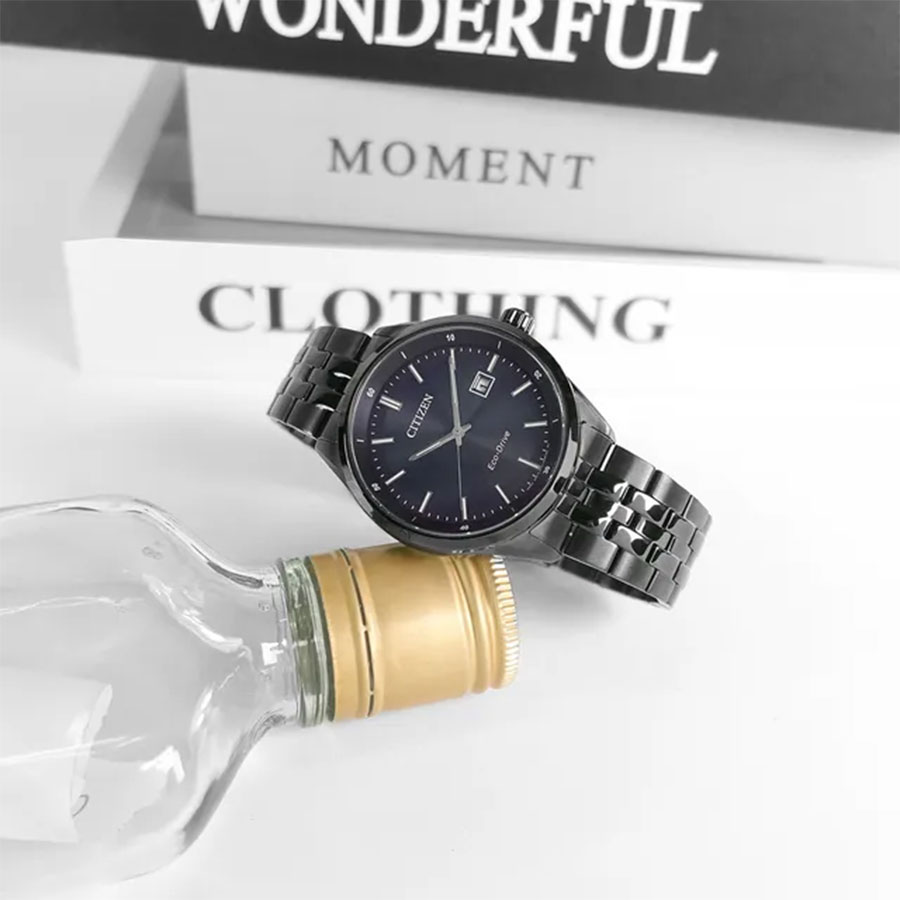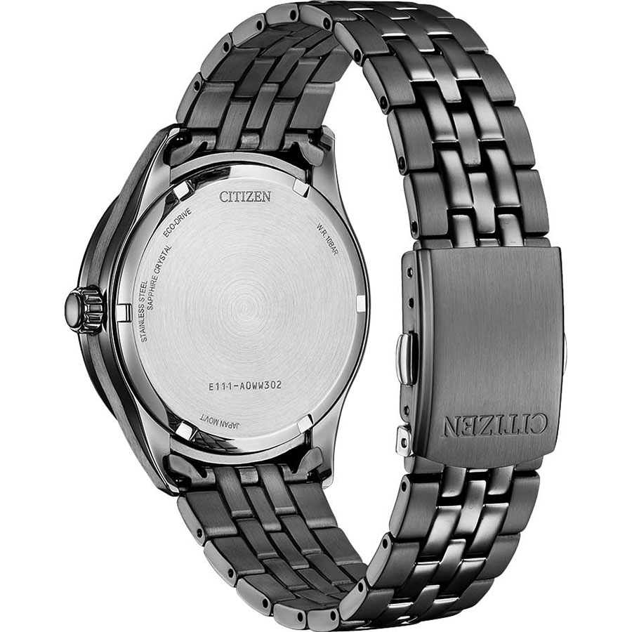 Мужские кварцевые наручные часы на солнечной батарее Citizen BM7567-50L коллекции Eco-Drive. Калибр механизма — E111. Аккумулятор данной модели заряжается от любого источника света. Срок работы аккумулятора с полным зарядом — до 180 дней. Примерный срок службы аккумулятора — 10 лет. Присутствует функция информирования о недостаточном заряде и функция предотвращения перезаряда. На данной модели отображается дата. Сапфировое стекло, устойчивое к появлению царапин. Стрелки и метки покрыты люминесцентным напылением (светятся в темноте). Стальной браслет. На корпус и браслет нанесено стойкое PVD покрытие. Водонепроницаемость WR100 (10 атм).