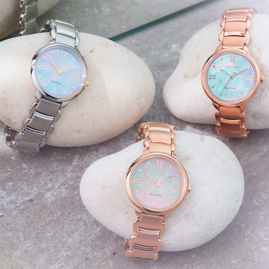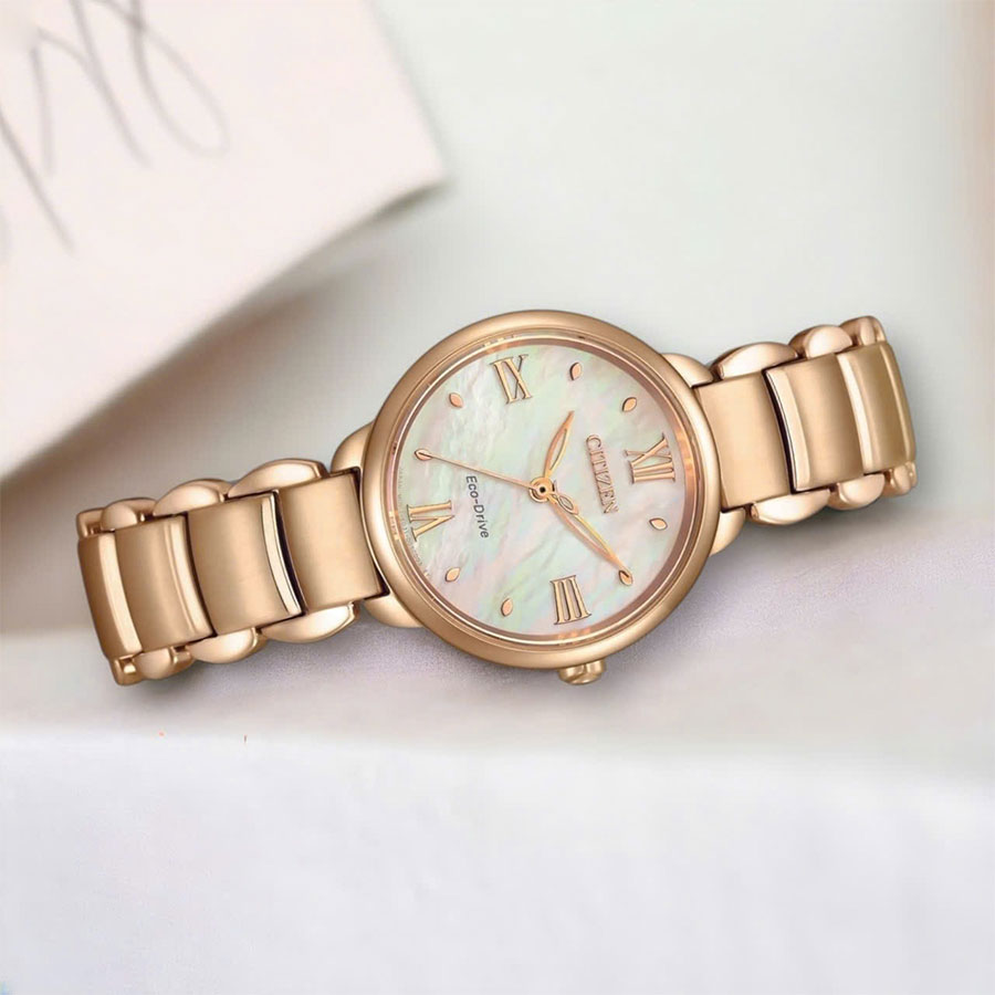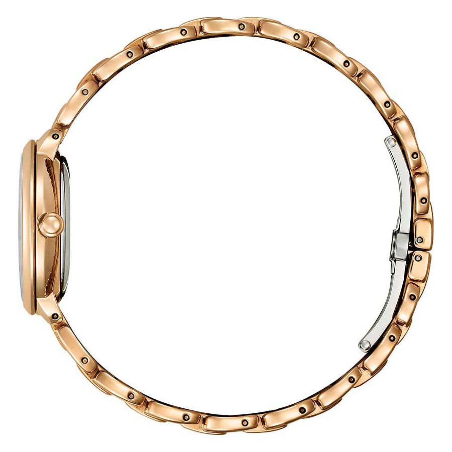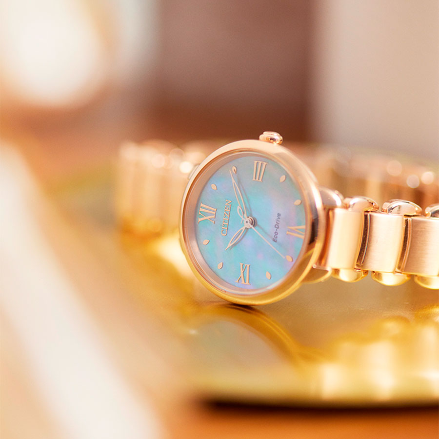 Женские кварцевые часы на солнечной батарее Citizen EM0929-81Y коллекции Eco-Drive. Калибр механизма — E031. Аккумулятор данной модели заряжается от любого источника света. Срок работы аккумулятора с полным зарядом — до 180 дней. Примерный срок службы аккумулятора — 10 лет. Имеется функция предупреждения о недостаточном заряде и функция предотвращения перезаряда. Установлено устойчивое к царапинам сапфировое стекло. Стальной браслет. На корпус и браслет нанесено стойкое PVD покрытие. Водонепроницаемость WR50 (5 атм).
