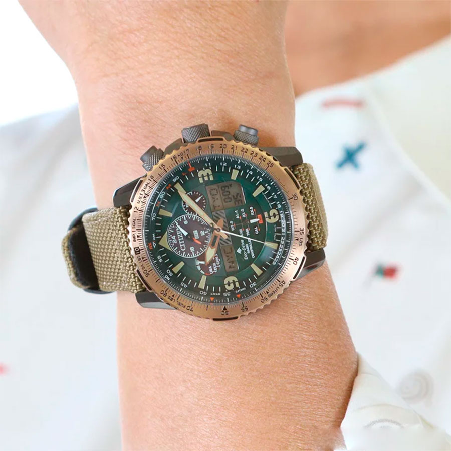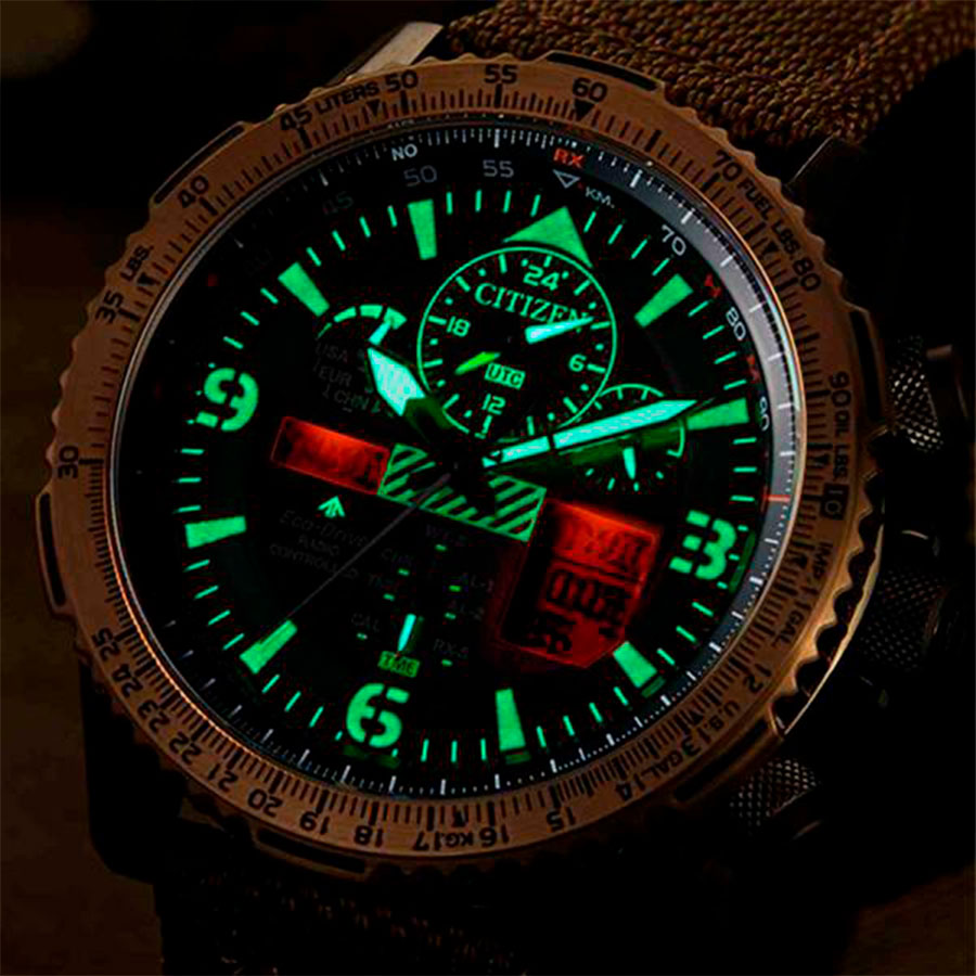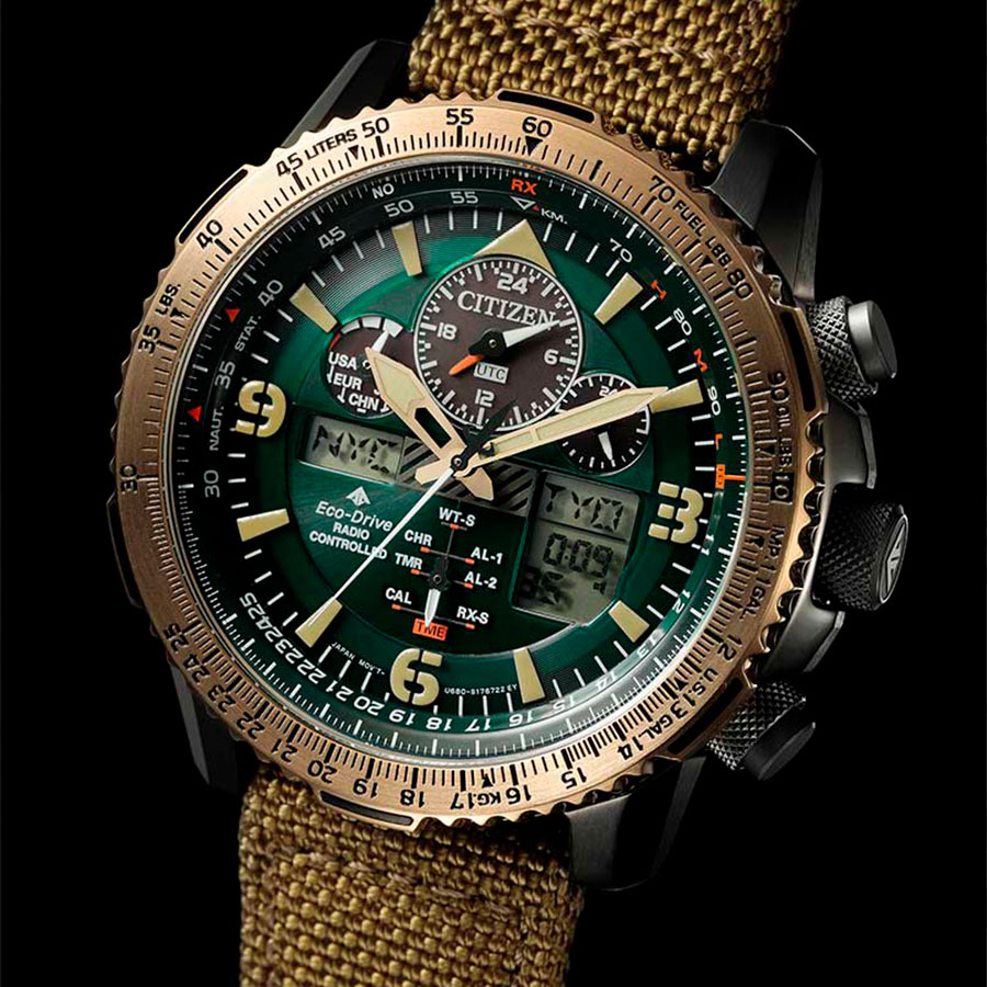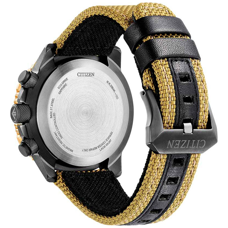 Мужские кварцевые наручные часы с радиоконтролем на солнечной батарее Citizen JY8074-11X коллекции Promaster. Калибр механизма — U680. Аккумулятор данной модели заряжается от любого источника света. Срок работы аккумулятора с полным зарядом — около 6-ти месяцев. Примерный срок службы аккумулятора — 10 лет. Функциональность данной модели: радиоконтроль точного времени; функция двойного времени; режим летнего времени; автоматический календарь; отображение времени суток (24-х часовая шкала); функция предупреждения о недостаточном заряде и функция предотвращения перезаряда; индикатор заряда батареи; режим энергосбережения; мировое время; одновременное отображение на циферблате двух разных часовых поясов; 2 будильника; секундомер с точностью 1/100 секунды и измерением до 24 часов; вращающийся безель с логарифмической линейкой; таймер обратного отсчета с диапазоном 99 минут; диодная подсветка циферблата. Установлено устойчивое к появлению царапин сапфировое стекло с антибликовым покрытием. Люминесцентное напыление на стрелках и метках (светятся в темноте). Текстильный ремешок. На корпус нанесено стойкое PVD покрытие. Данная модель обладает высокой степенью водонепроницаемости WR200 (20 атм) и подходит для глубокого погружения под воду.