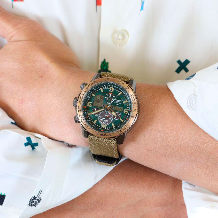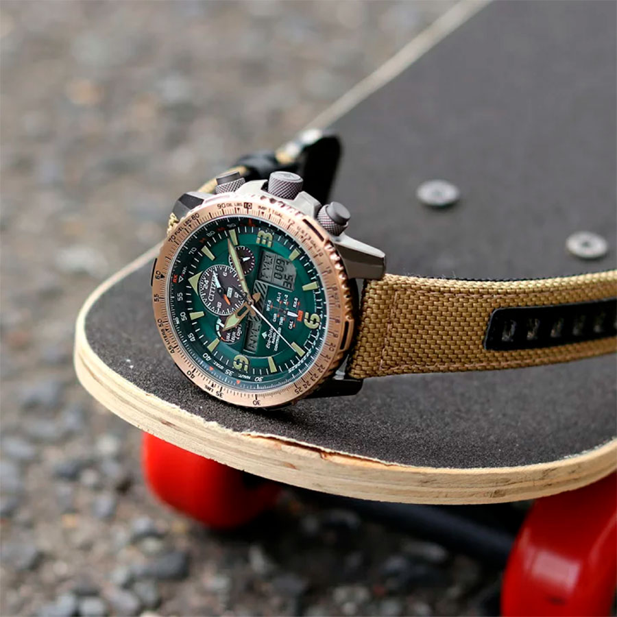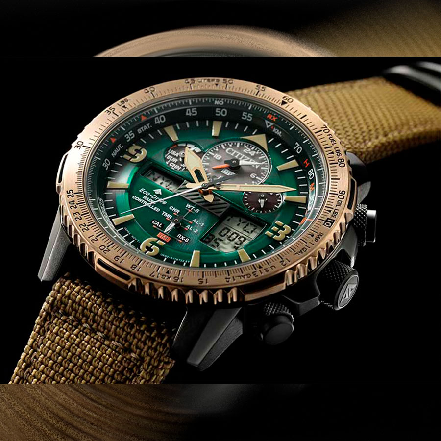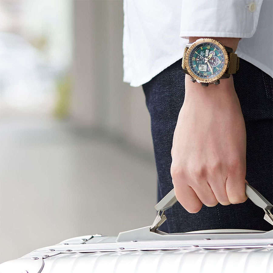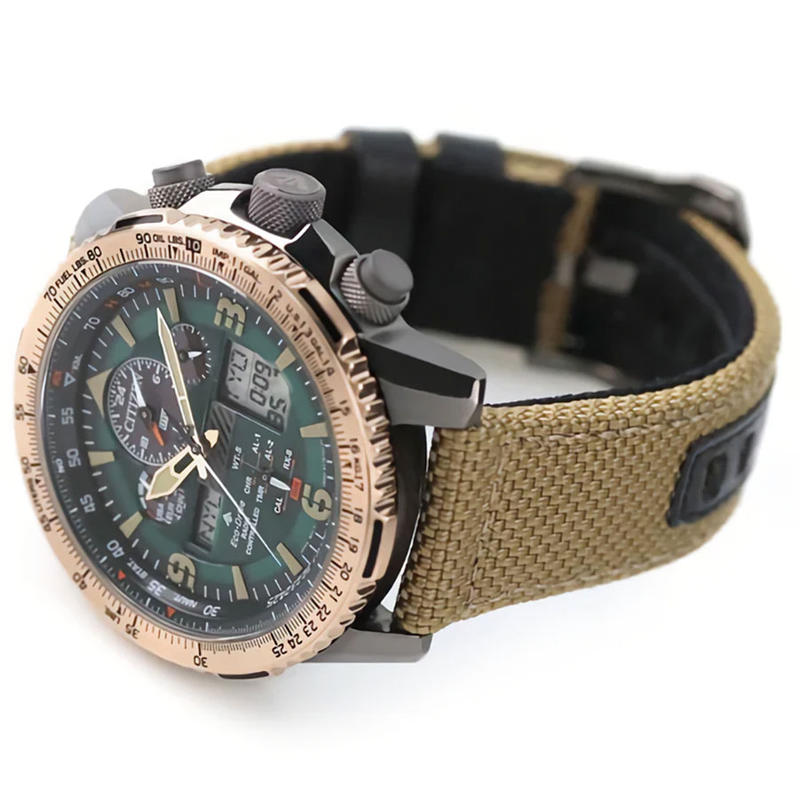 Мужские кварцевые наручные часы с радиоконтролем на солнечной батарее Citizen JY8074-11X коллекции Promaster. Калибр механизма — U680. Аккумулятор данной модели заряжается от любого источника света. Срок работы аккумулятора с полным зарядом — около 6-ти месяцев. Примерный срок службы аккумулятора — 10 лет. Функциональность данной модели: радиоконтроль точного времени; функция двойного времени; режим летнего времени; автоматический календарь; отображение времени суток (24-х часовая шкала); функция предупреждения о недостаточном заряде и функция предотвращения перезаряда; индикатор заряда батареи; режим энергосбережения; мировое время; одновременное отображение на циферблате двух разных часовых поясов; 2 будильника; секундомер с точностью 1/100 секунды и измерением до 24 часов; вращающийся безель с логарифмической линейкой; таймер обратного отсчета с диапазоном 99 минут; диодная подсветка циферблата. Установлено устойчивое к появлению царапин сапфировое стекло с антибликовым покрытием. Люминесцентное напыление на стрелках и метках (светятся в темноте). Текстильный ремешок. На корпус нанесено стойкое PVD покрытие. Данная модель обладает высокой степенью водонепроницаемости WR200 (20 атм) и подходит для глубокого погружения под воду.